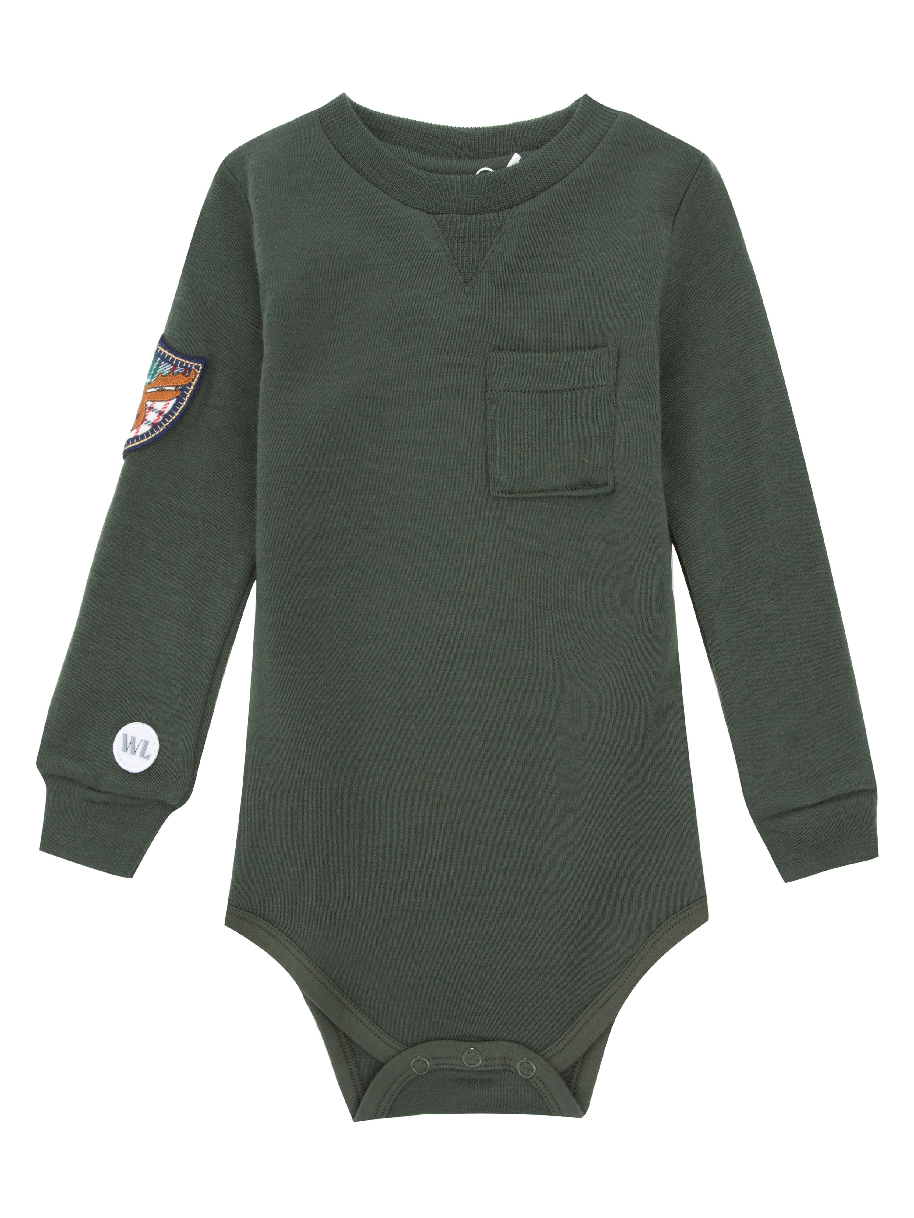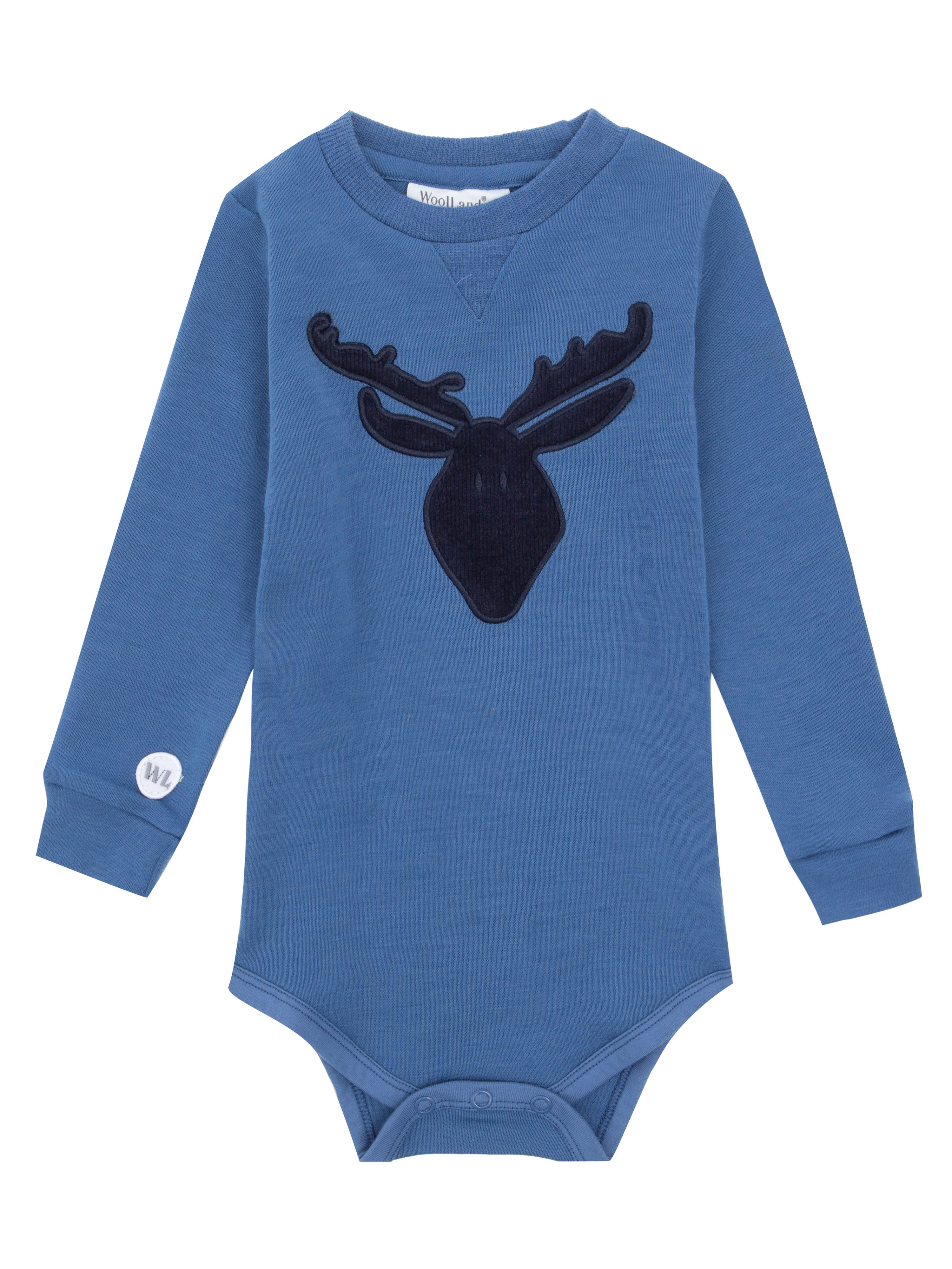 WoolLand's best-selling wool body in the finest 100% merino wool. The wool body has a tiny pocket on the front of the chest, patches in corduroy on the shoulders and a decorative moose on the back.