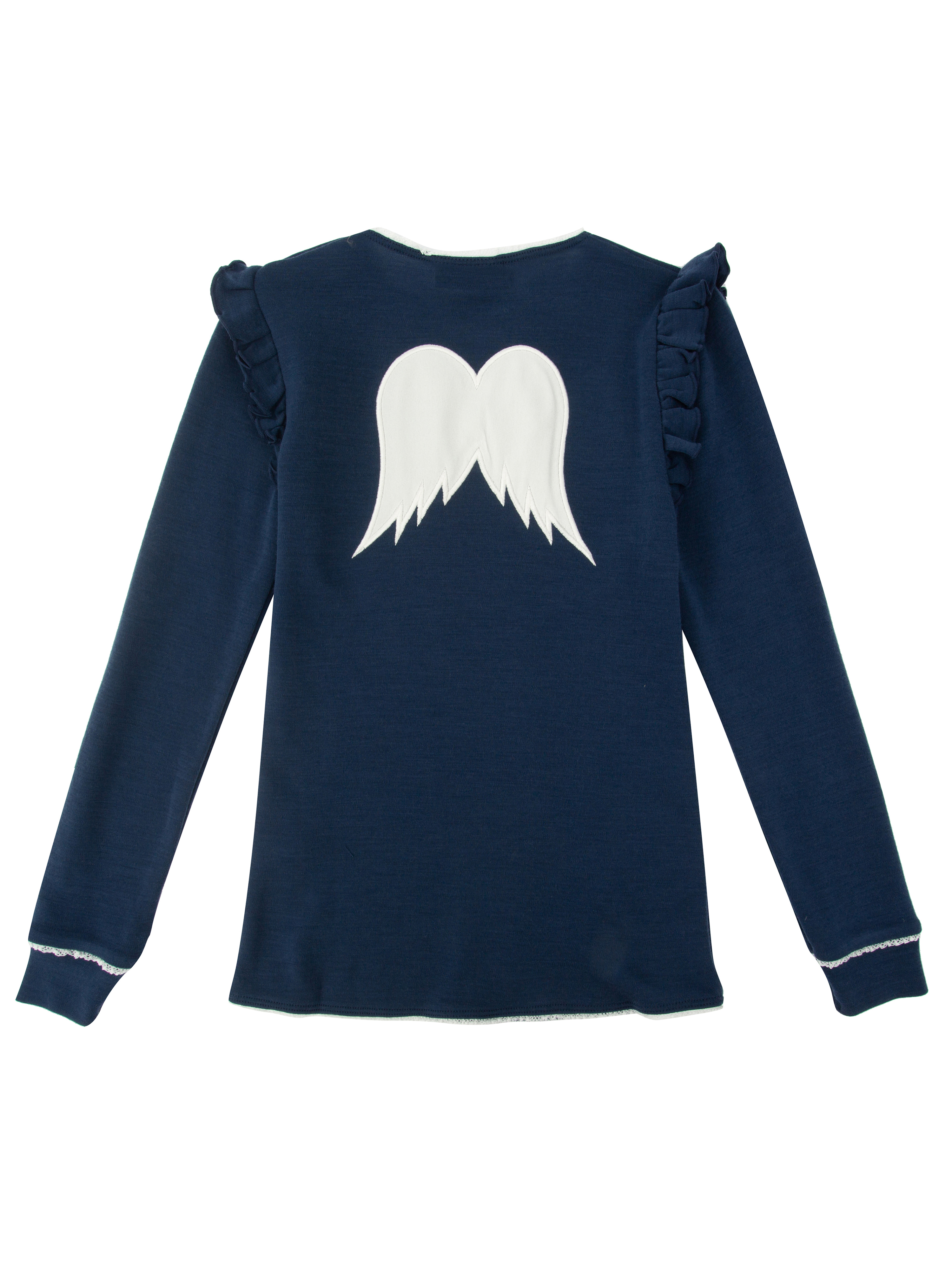 This is a nice woolen top with pretty angel wings on the back or the moose Wooly in front.