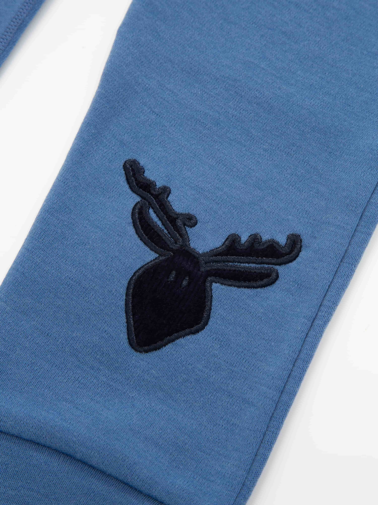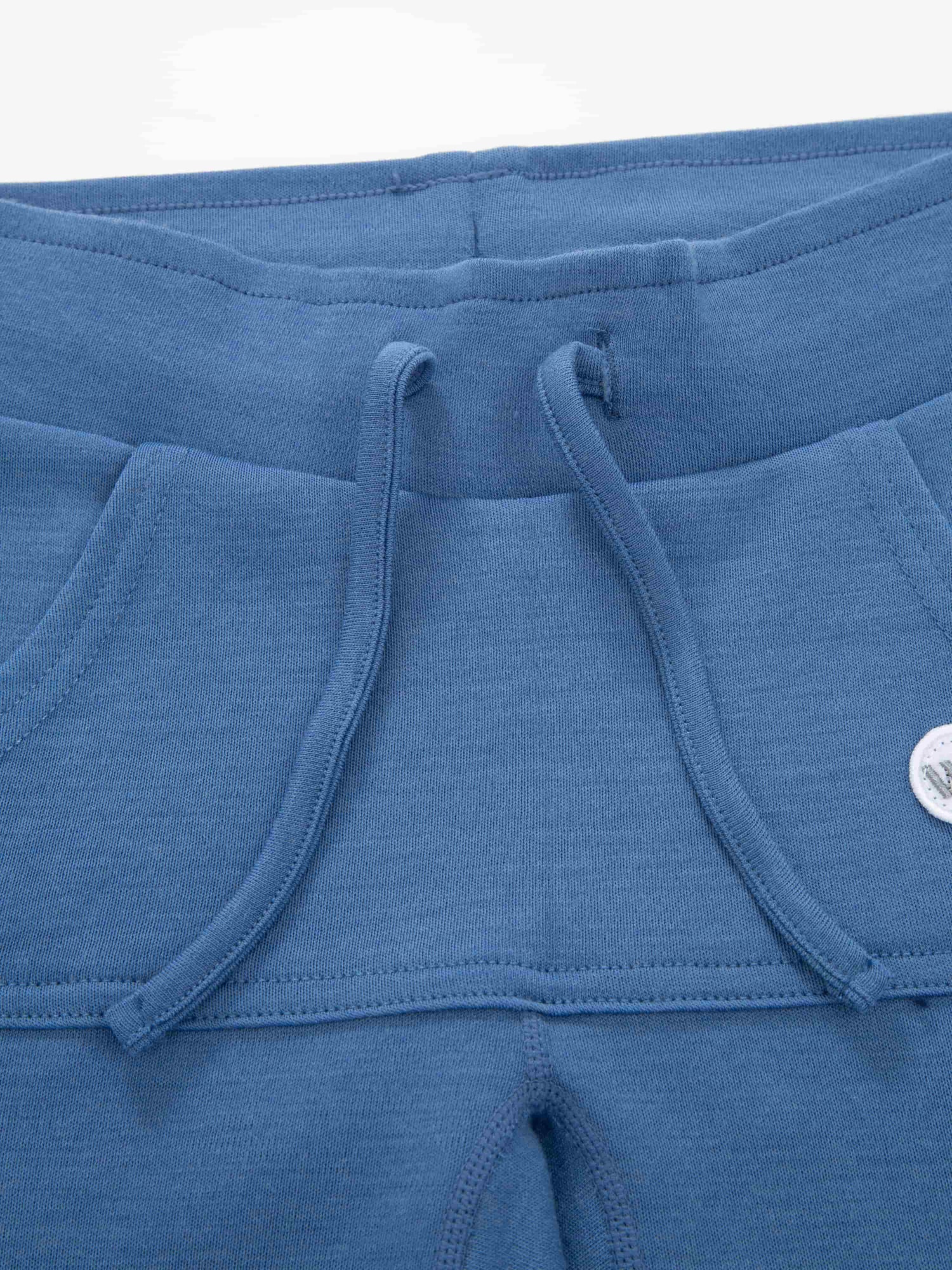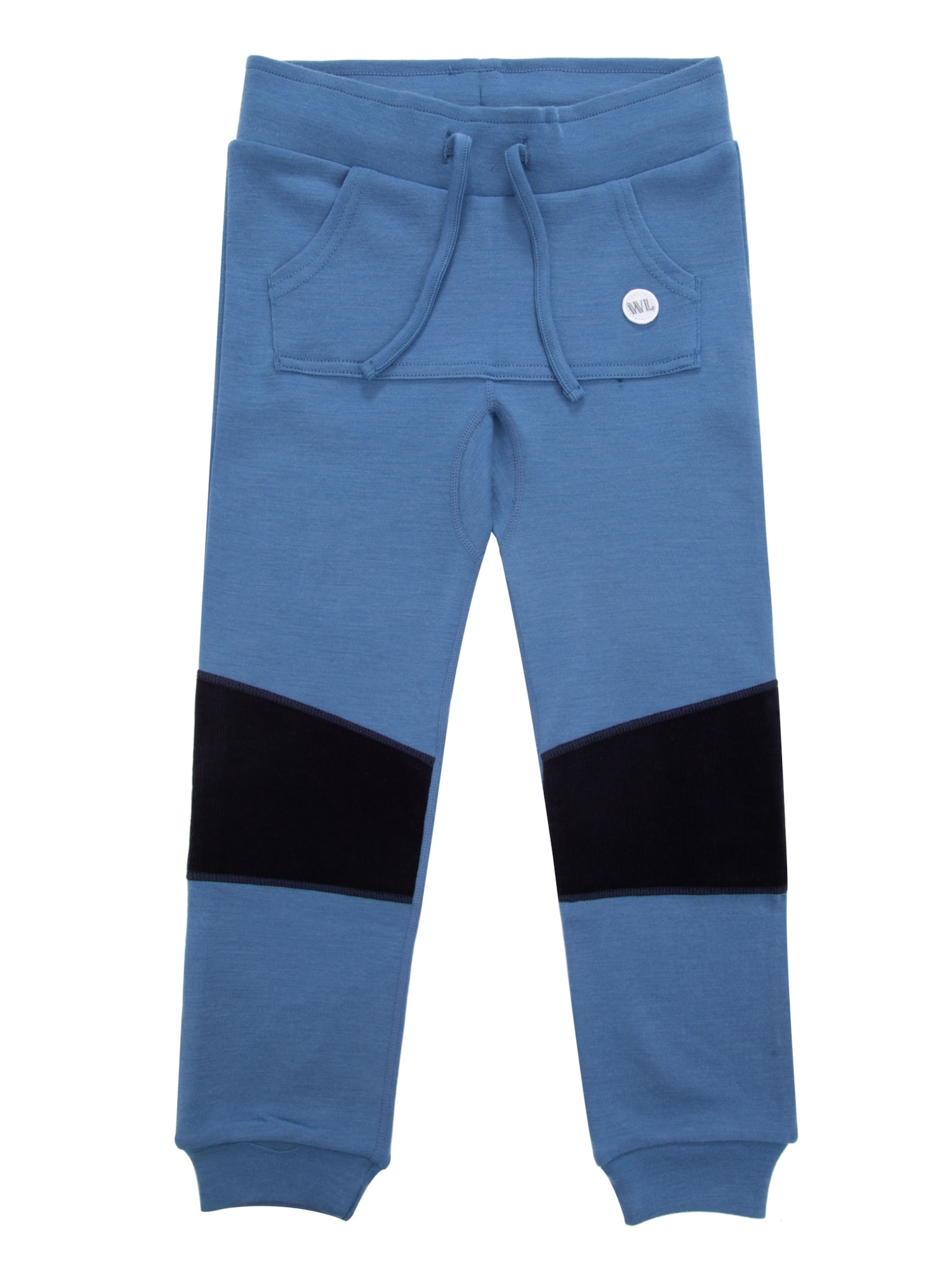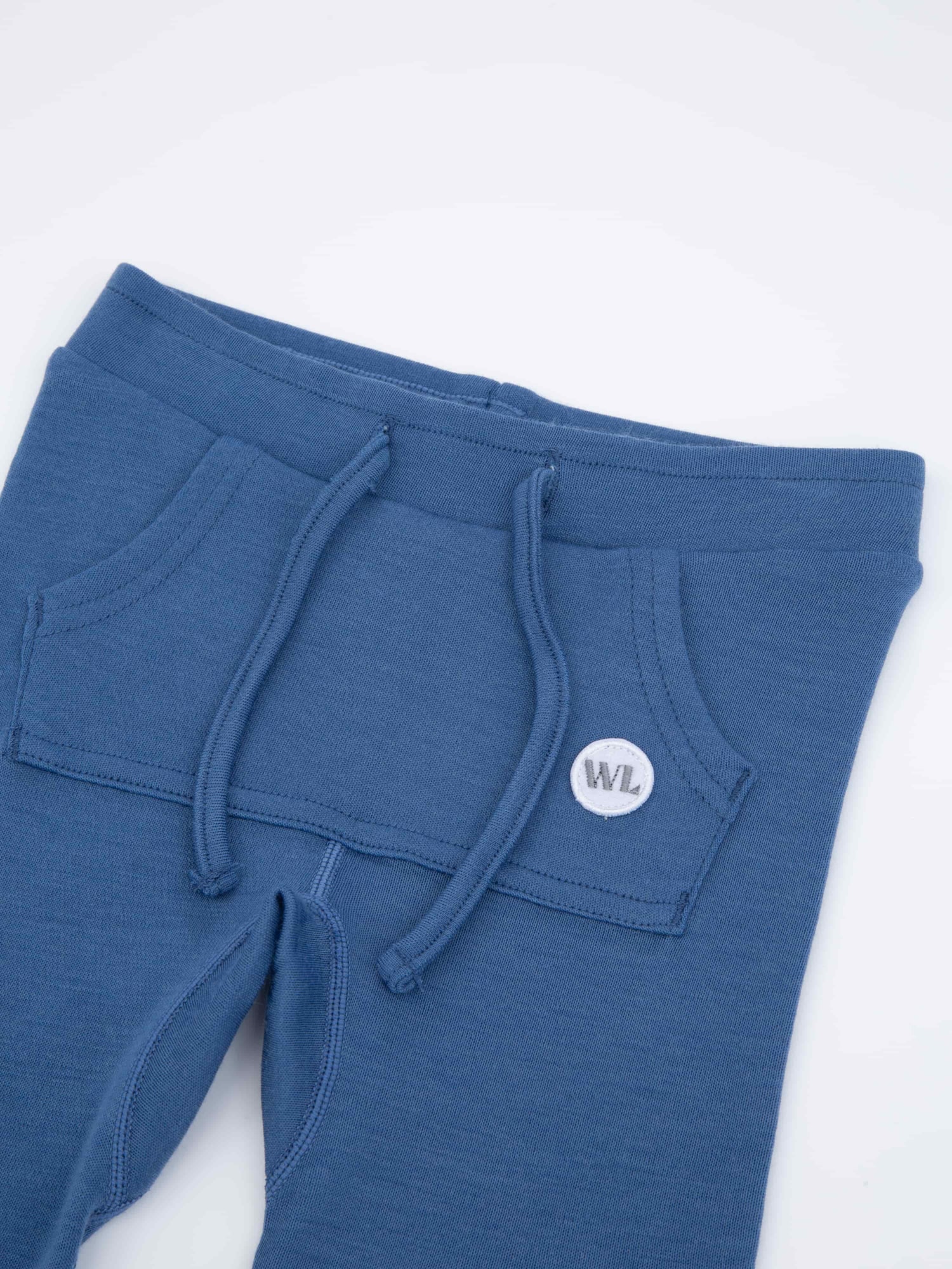 Ullbukse til baby i premium 100% merinoull. Kenguru lomme i front, snøring i elastisk liv og strikk neders på mansjettene. Dekorert med englevinge nederst på bakside leg for å matche overdel med vinge på rygg. Hjerteformede patcher over knær for ekstra beskyttelse.