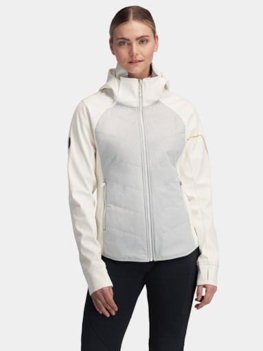 Technical and warm cross-country jacket for women. This is a stylish cross-country jacket where you stand out on the trail, and are dressed warmer than normal cross-country clothing. The jacket is lightly padded with wool on the front and back, which provides extra warmth during use. The quality is stretchy, absorbent and durable. The jacket is slightly turned in with seams that provide a flattering fit. Strategically placed breathability panels and lazercut give the garment increased breathability. The jacket is also made of a water-repellent material with a water column of 3000 mm which will protect against snow and a little rain.