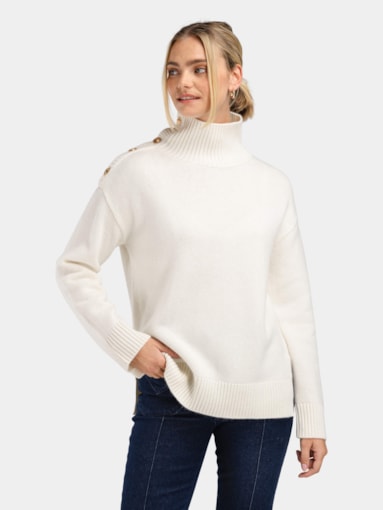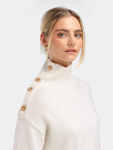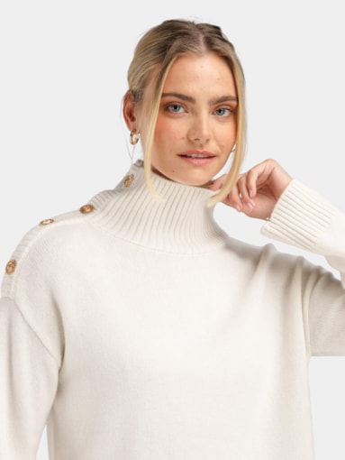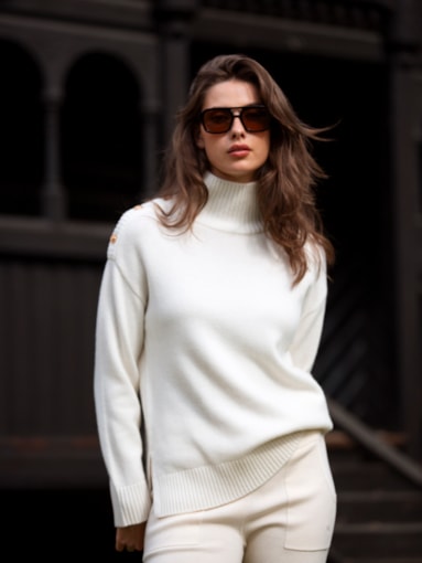 • Luxurious knitted sweater in a timeless design. The fit of the sweater is oversized, so the sizing is slightly larger. It is made from ultra-soft premium merino wool and cashmere, providing exceptional comfort against the skin.