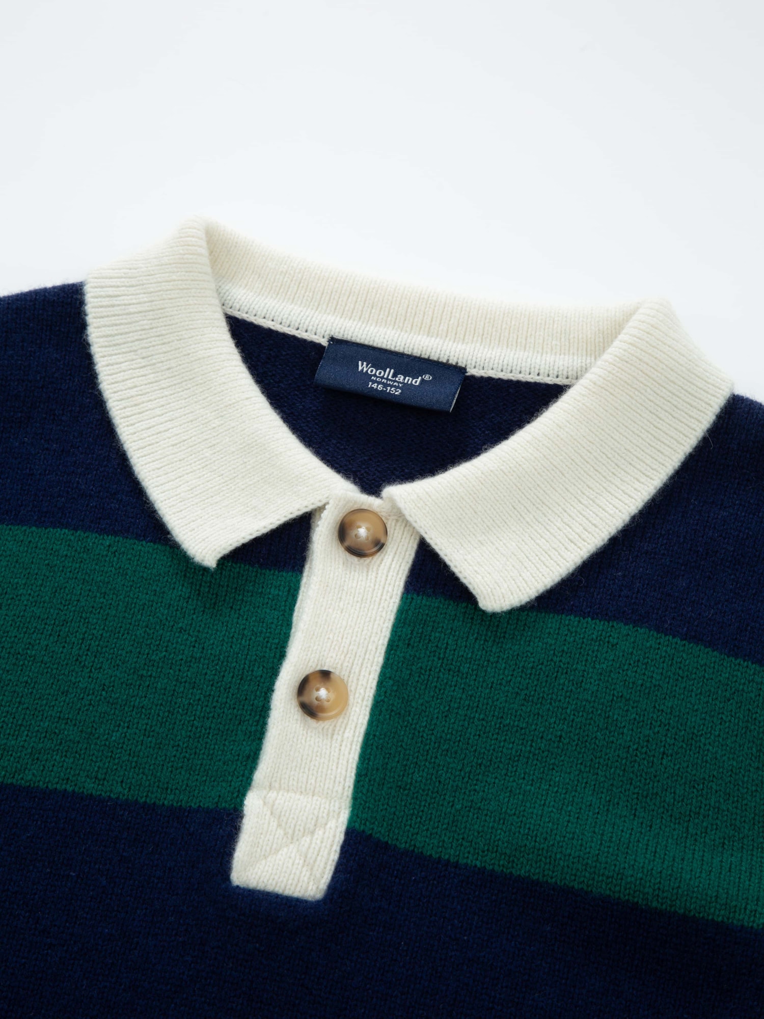 The Eidsvoll sweater features a timeless rugby look with bold stripes, a soft collar and front button closure. It is made from 100 % merino wool that feels soft against the skin and provides natural warmth without overheating. The material is breathable and helps regulate temperature whether he's playing outside or heading to school.A comfortable and versatile sweater with a sporty touch, perfect for both everyday use and outdoor fun.