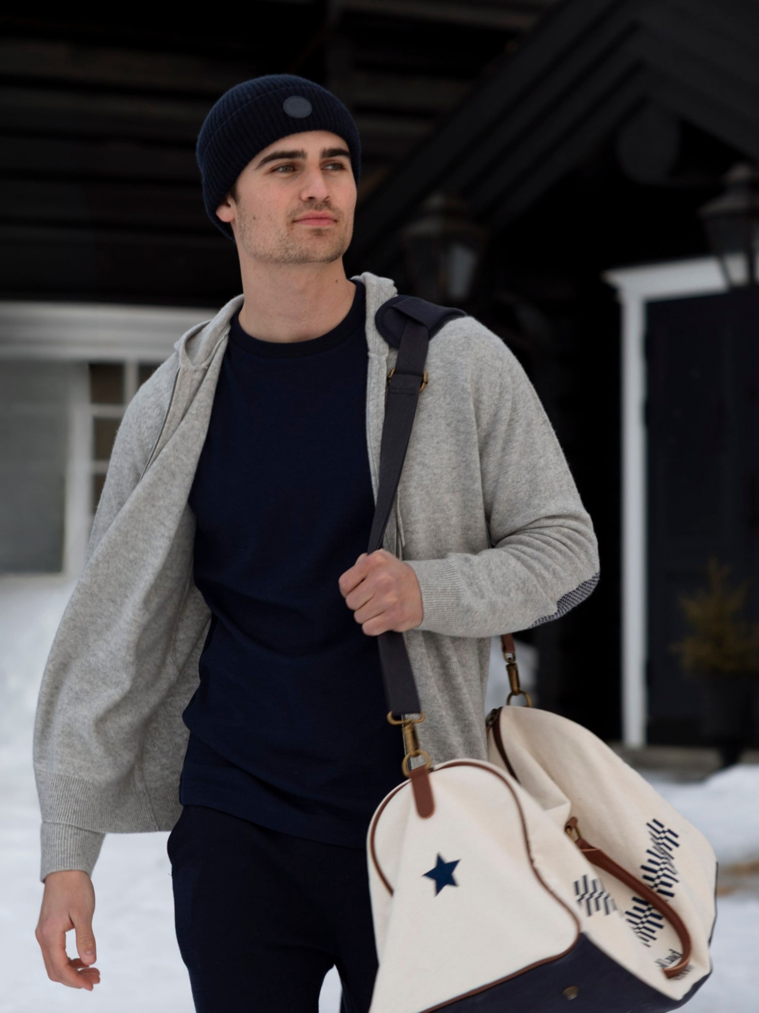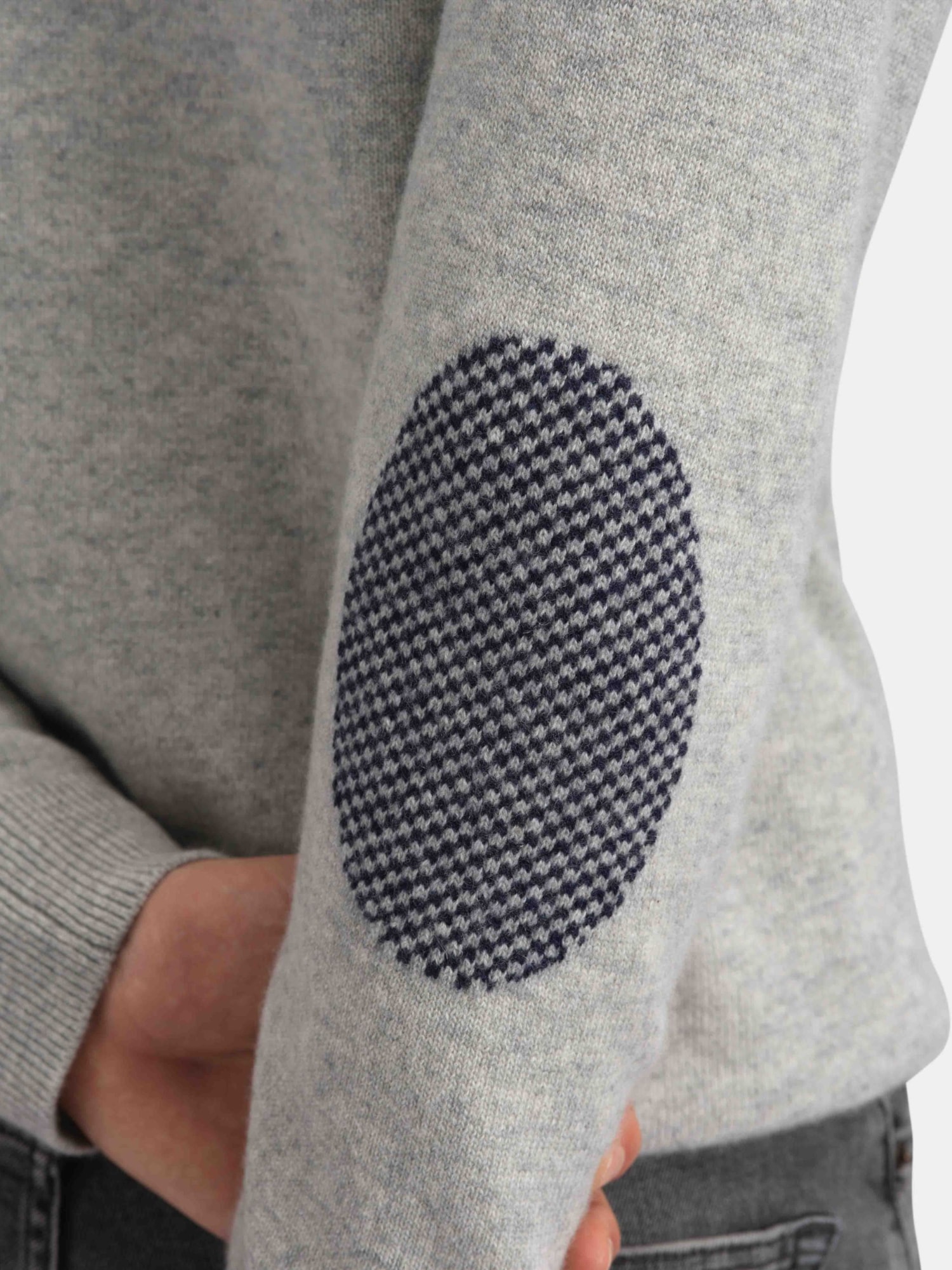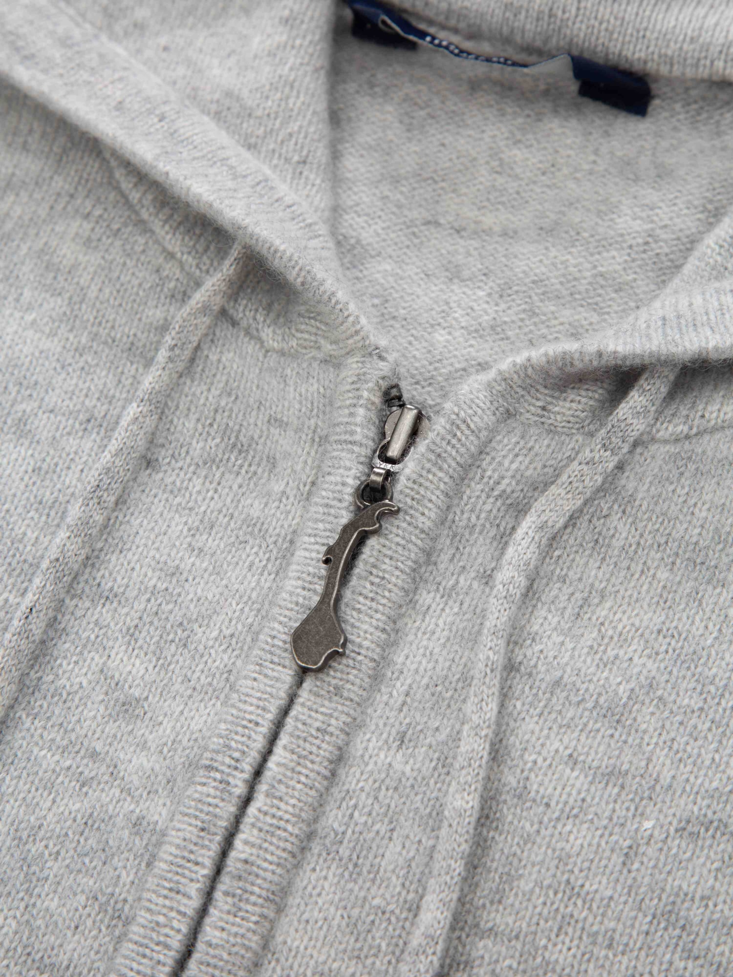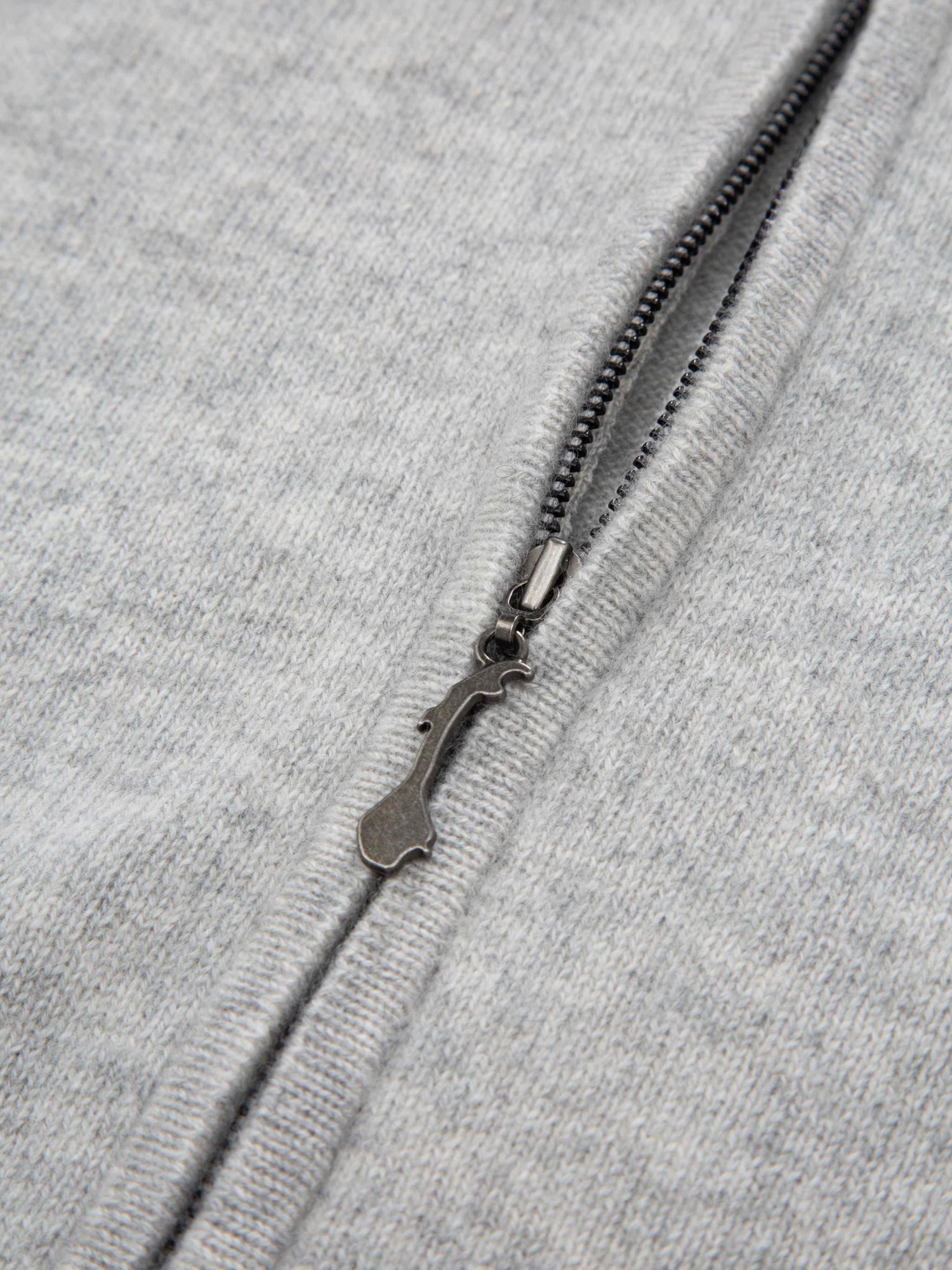 This exclusive men’s jacket in 100% cashmere combines luxury and comfort with a sporty, modern style. It features a full front zipper, a high collar with drawstring, and ribbed cuffs and hem for a perfect fit. Contrasting elbow patches add a timeless and masculine touch.