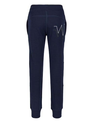 Good and comfortable wool trousers for boys in super soft merino wool. Good deep pockets at the front, and wide good rib knit with a knot at the waist that makes it feel comfortable and fits well. The trousers have a small detail at the back of the waist with a sewn-on ribbon in a contrasting color, as well as a logo in the front and on the back pocket.