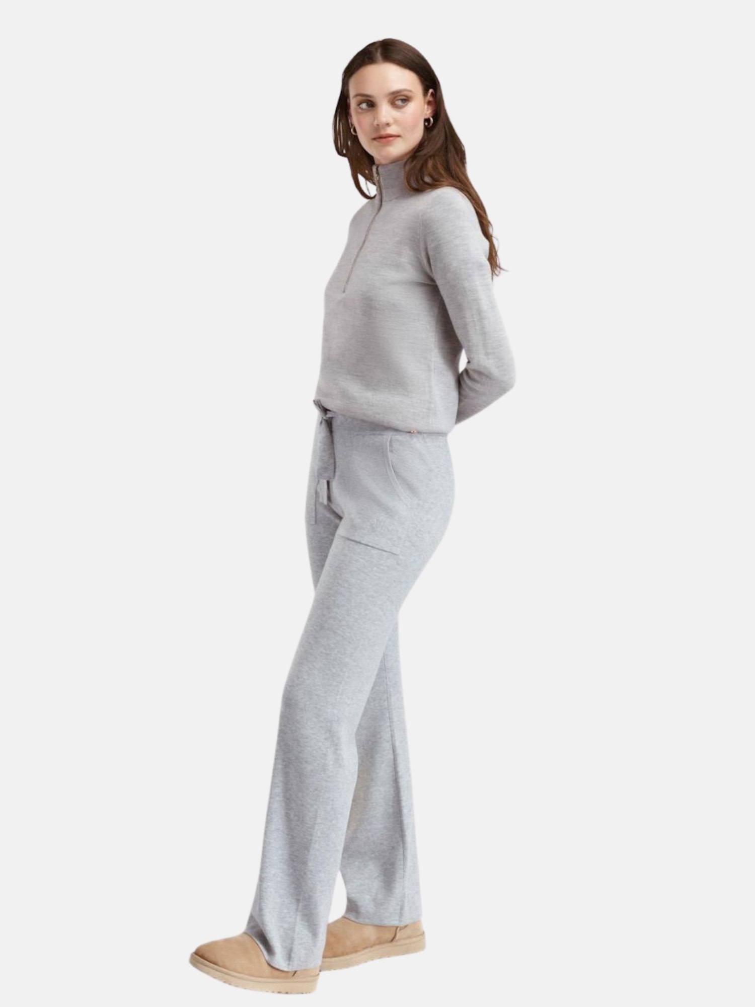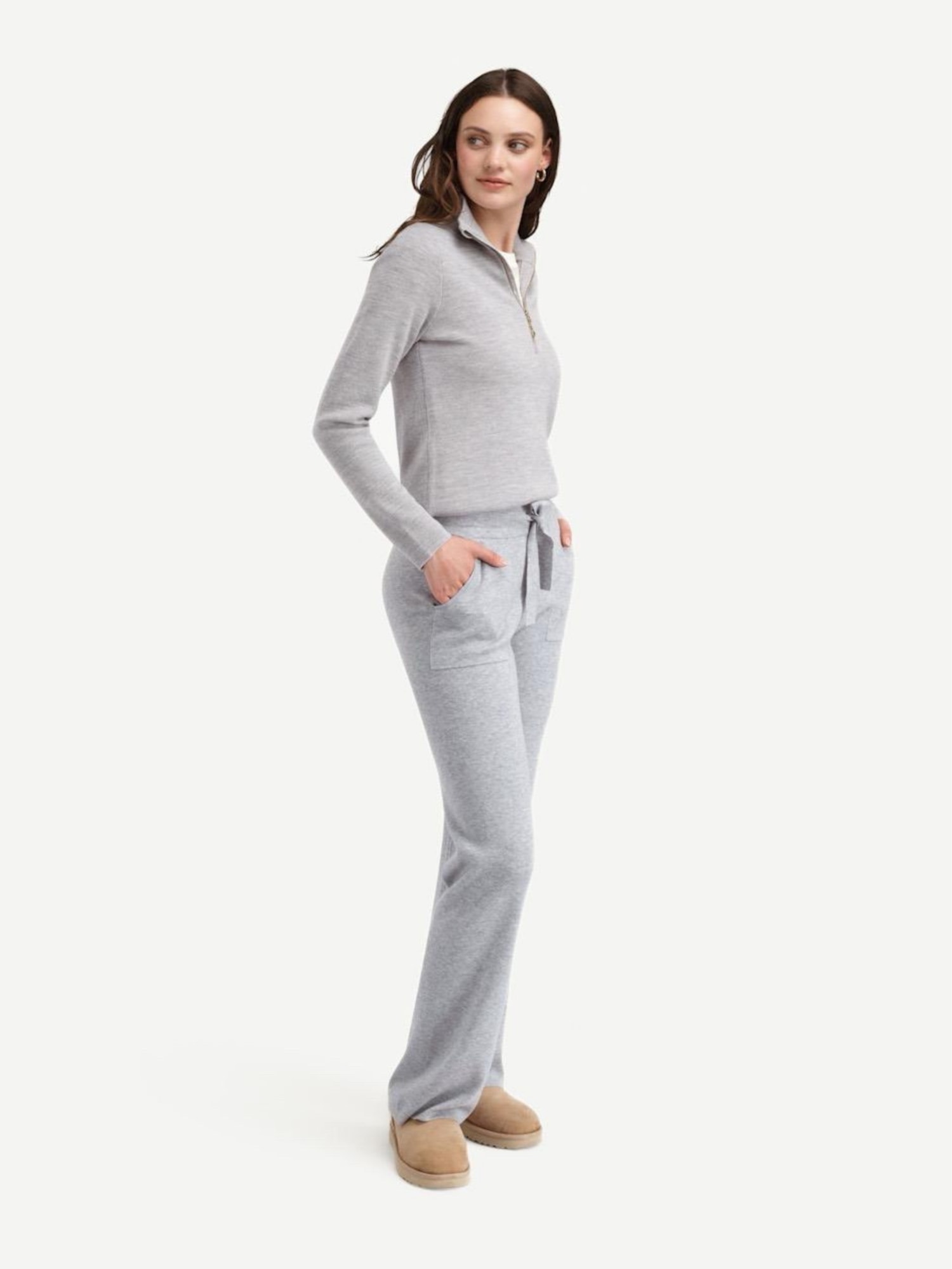 The wool trousers have a relaxed fit with a comfortable elastic waistband with lacing, and good pockets. For a complete set, use with one of our beautiful sweaters in the same color. Then you get an outfit that both looks good, is comfy and warms.