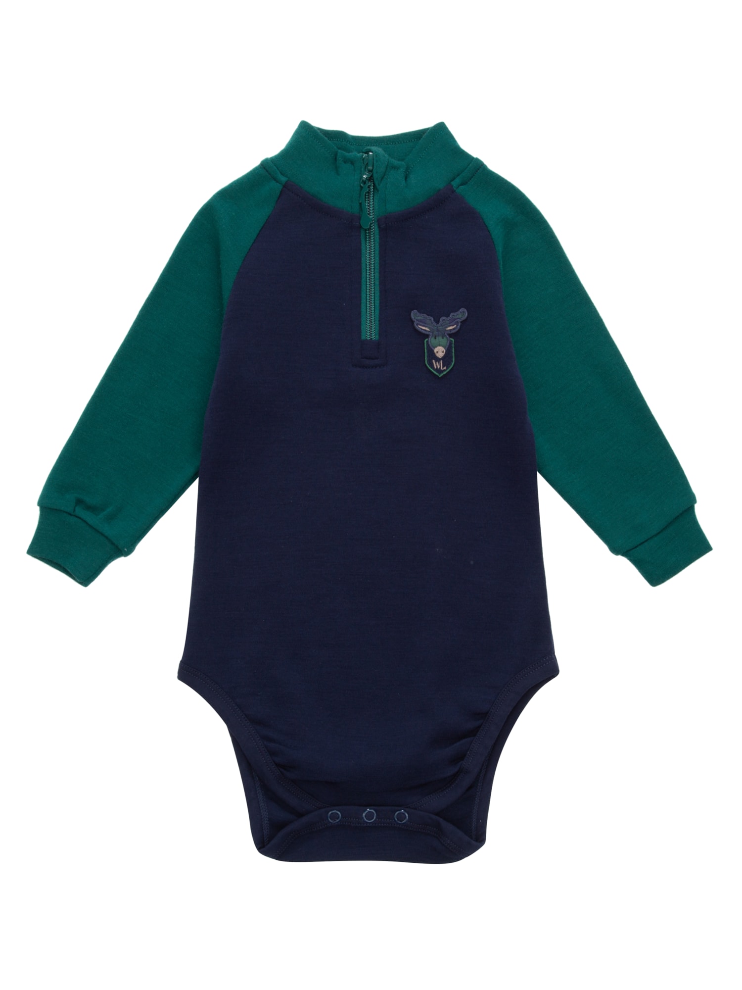 Hovden ullbody for baby er laget av 100 % myk og behagelig merinoull i vår 2-i-1 tykkelse. Bodyen har en praktisk half-zip i front og søte detaljer. Den finnes i flere farger og kan enkelt kombineres med flere av våre ullbukser for å skape et komplett ullsett. Perfekt til barnehagen.