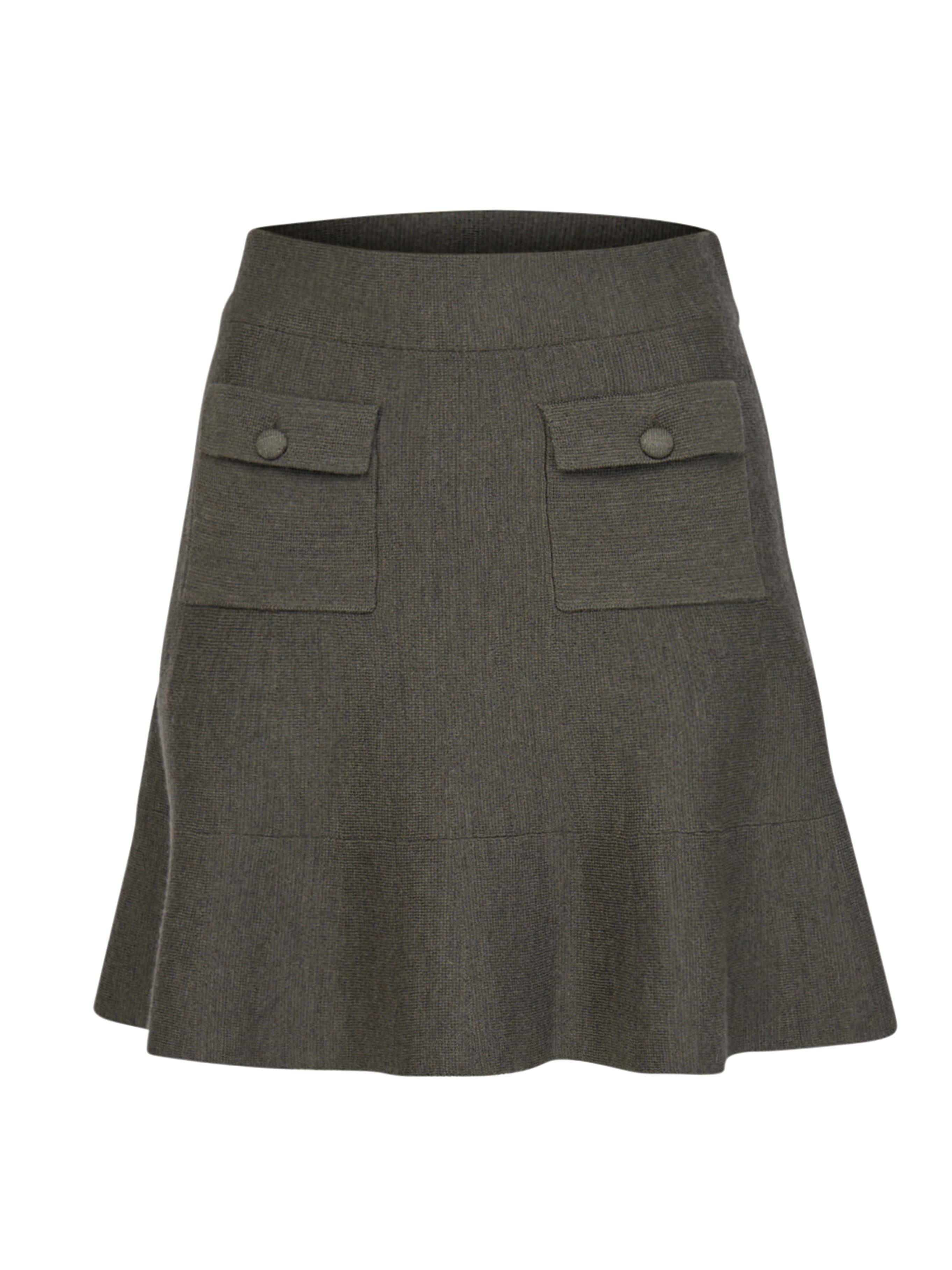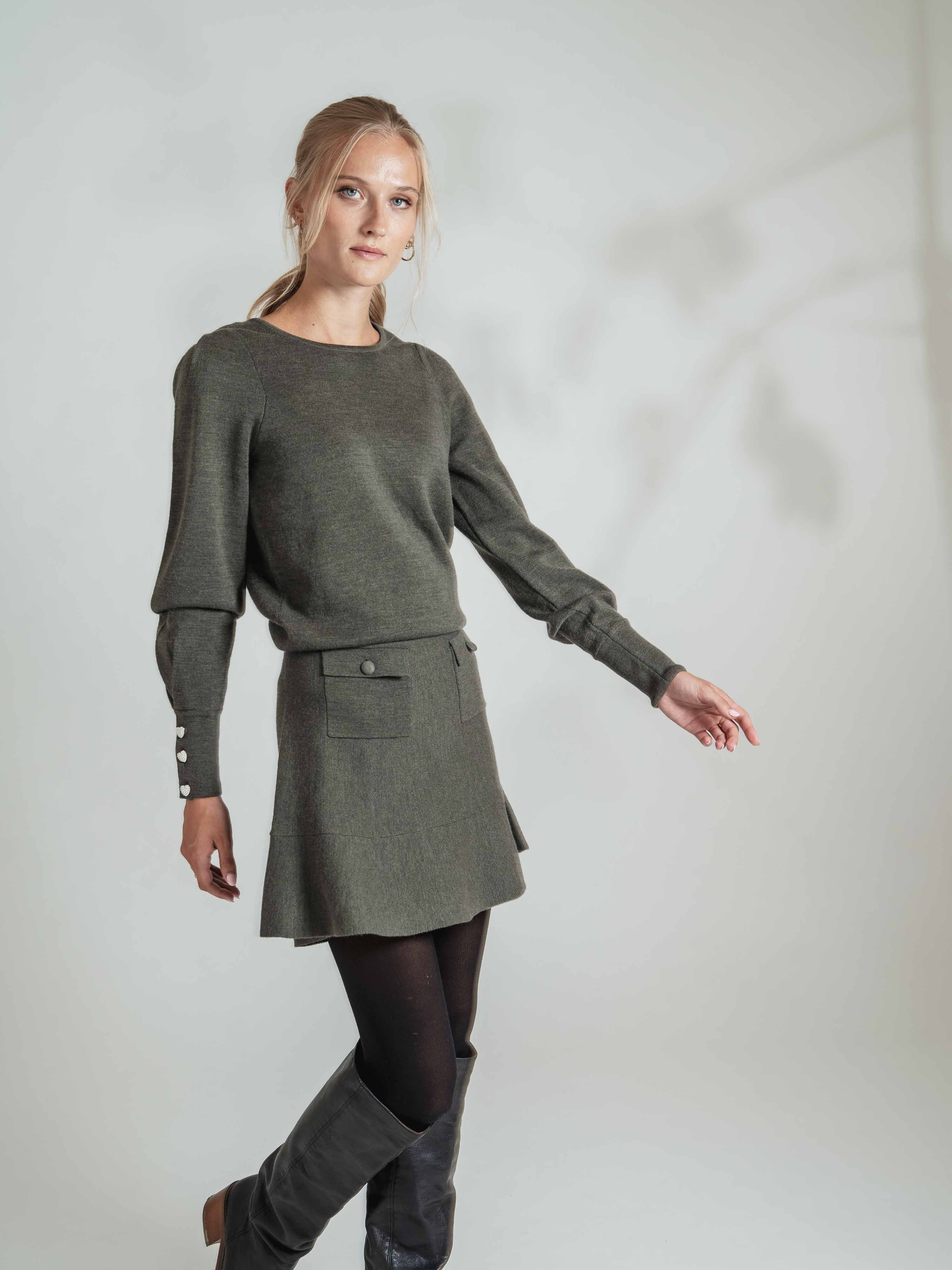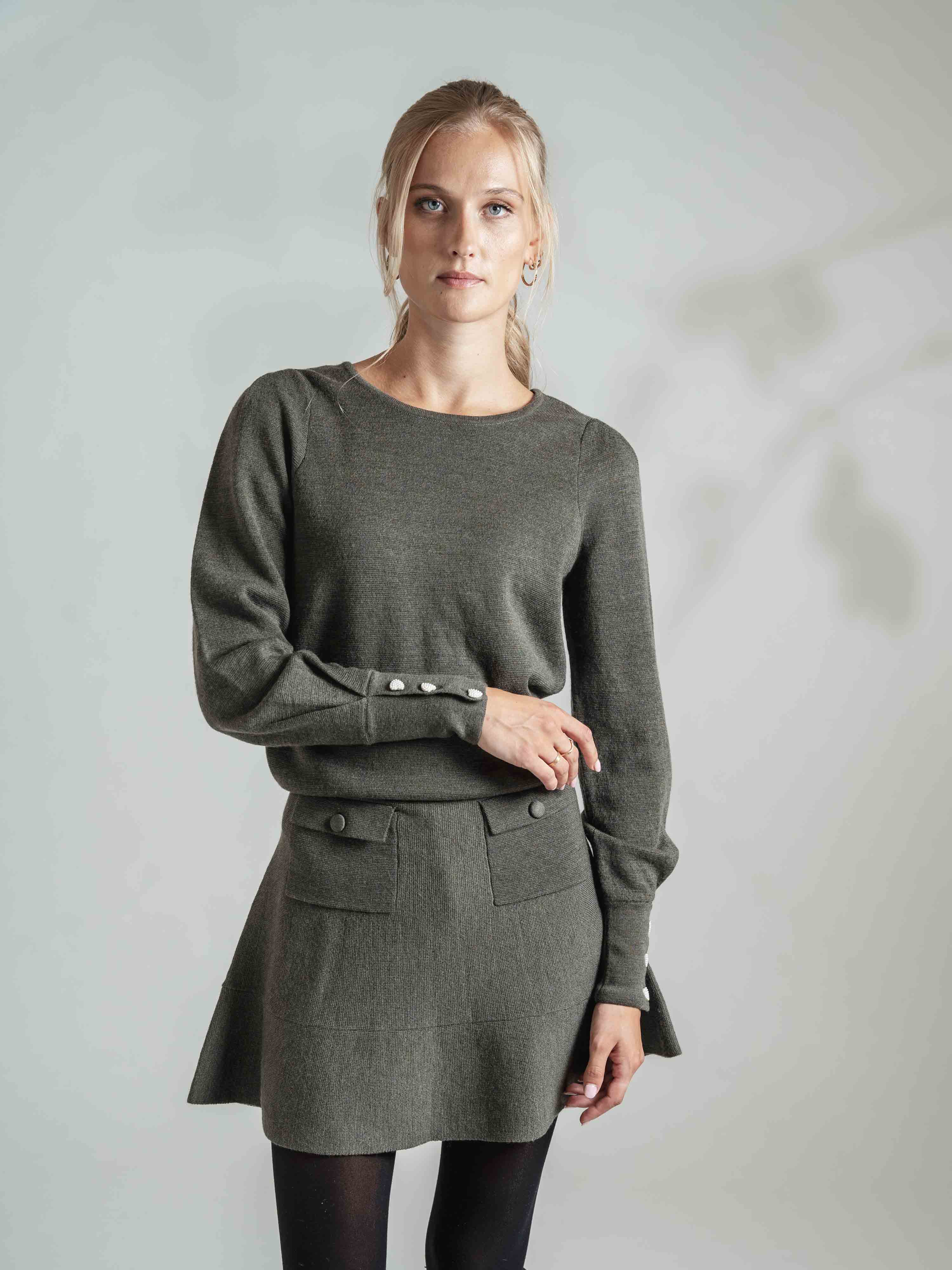 Beautiful wool skirt with a flattering fit that can be combined with a matching wool top, thick tights and seasonal boots. Front pockets give the garment the little extra we need this autumn.