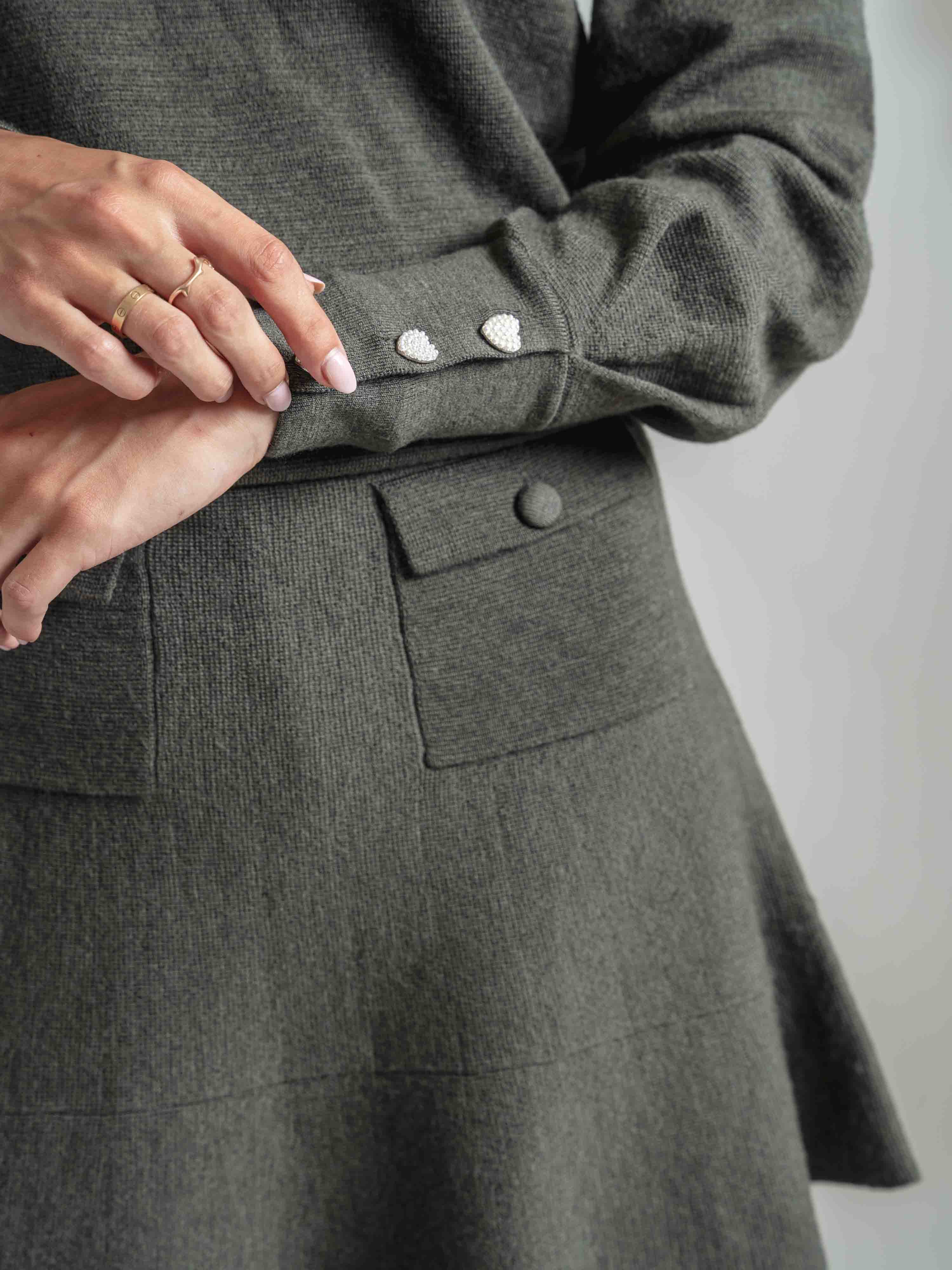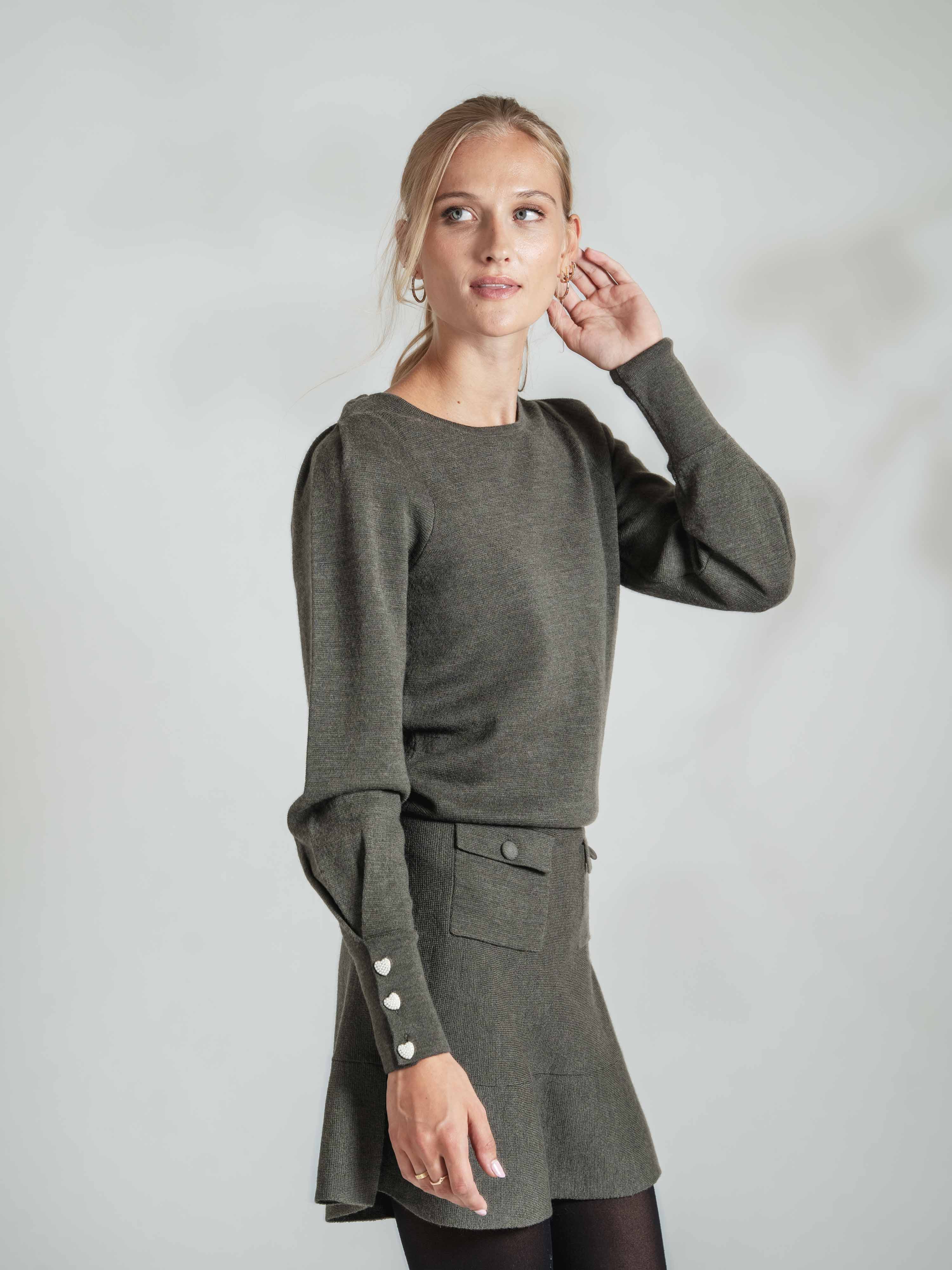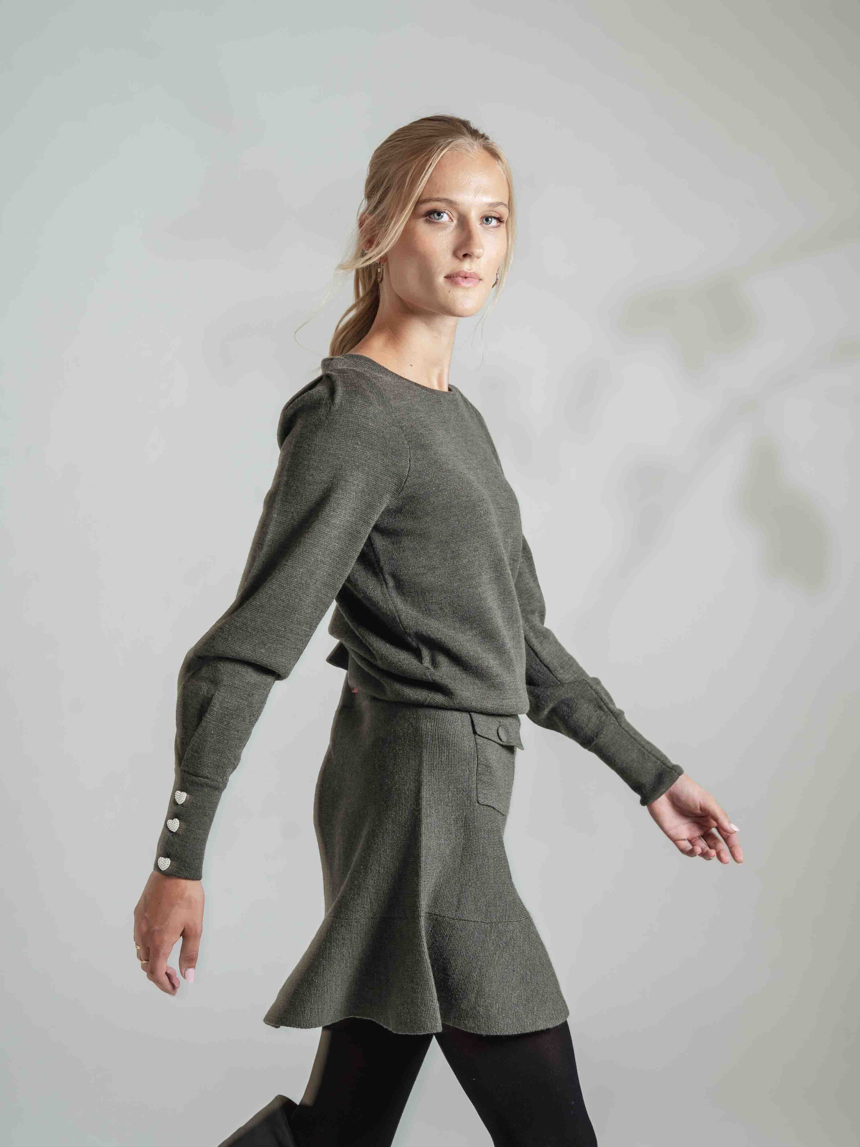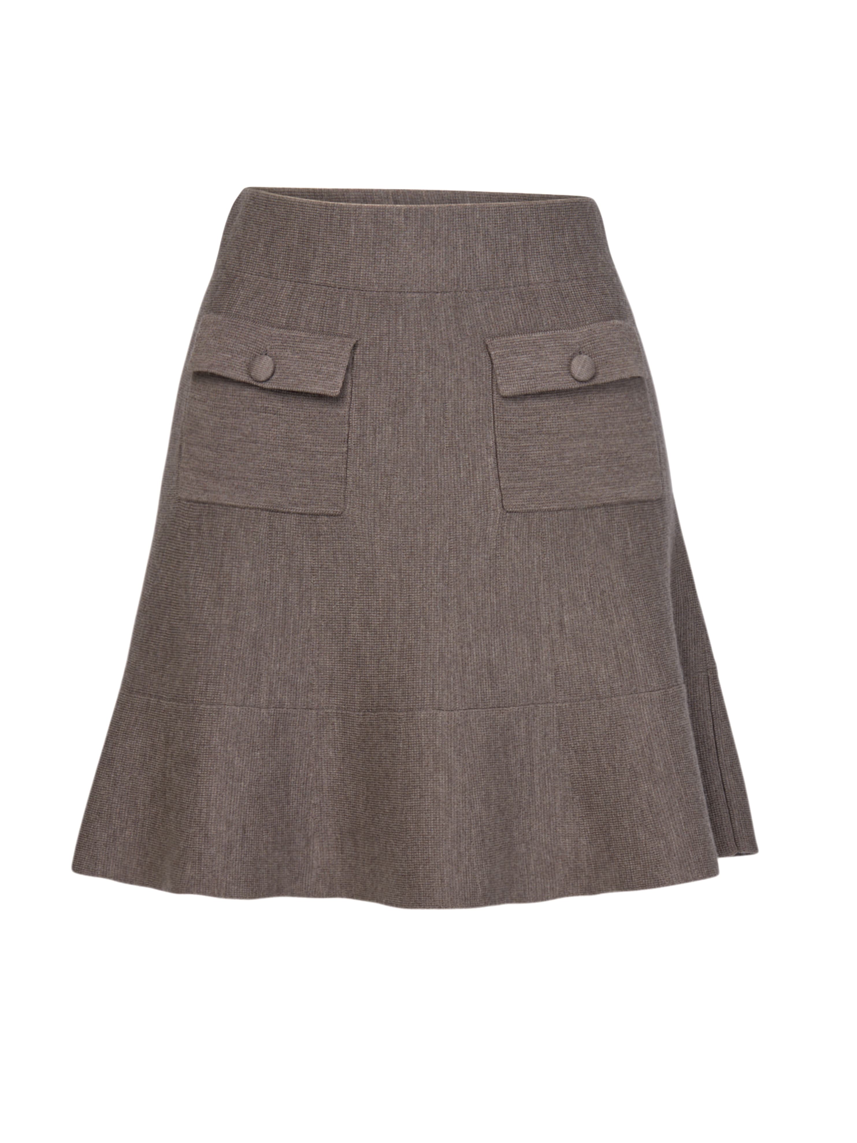 Beautiful wool skirt with a flattering fit that can be combined with a matching wool top, thick tights and seasonal boots. Front pockets give the garment the little extra we need this autumn.
