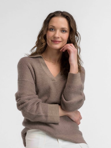 Super soft knitted sweater with collar and v-neck. Comes in two delicate colors that are timeless. The fit is slightly longer than our other knitted jumpers, and it is designed so that it fits a little looser. Match with Himmeltinden Ullbukse for the ultimate lounge set this fal!