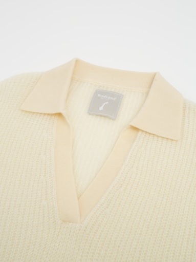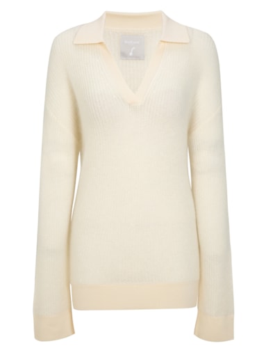 Super soft knitted sweater with collar and v-neck. Comes in two delicate colors that are timeless. The fit is slightly longer than our other knitted jumpers, and it is designed so that it fits a little looser. Match with Himmeltinden Ullbukse for the ultimate lounge set this fal!