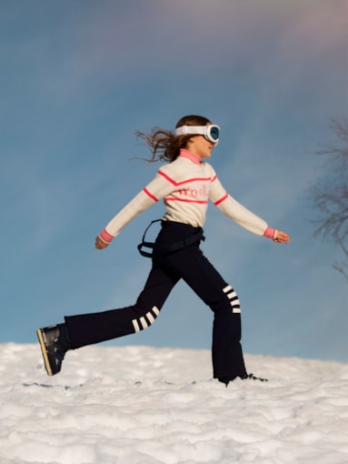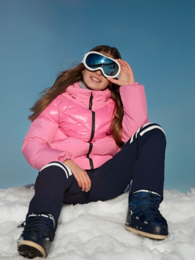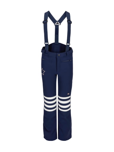 A ski pant that is both stylish and practical with excellent technical features for all winter-loving girls. The bootcut and high waist make this pant perfect for wearing over large boots, and it comes with detachable suspenders. Constructed from a soft, breathable, moisture-absorbing material with brushed fleece on the inside, the pant is durable, windproof, and water-resistant (water column of 10,000 mm). It features front pockets, an adjustable waist with Velcro, and adjustable suspenders. The pant also has a zipper at the bottom of the leg for extra width, making it easy to fit over alpine boots with snow gaiters underneath. White stripes accentuate the knees.