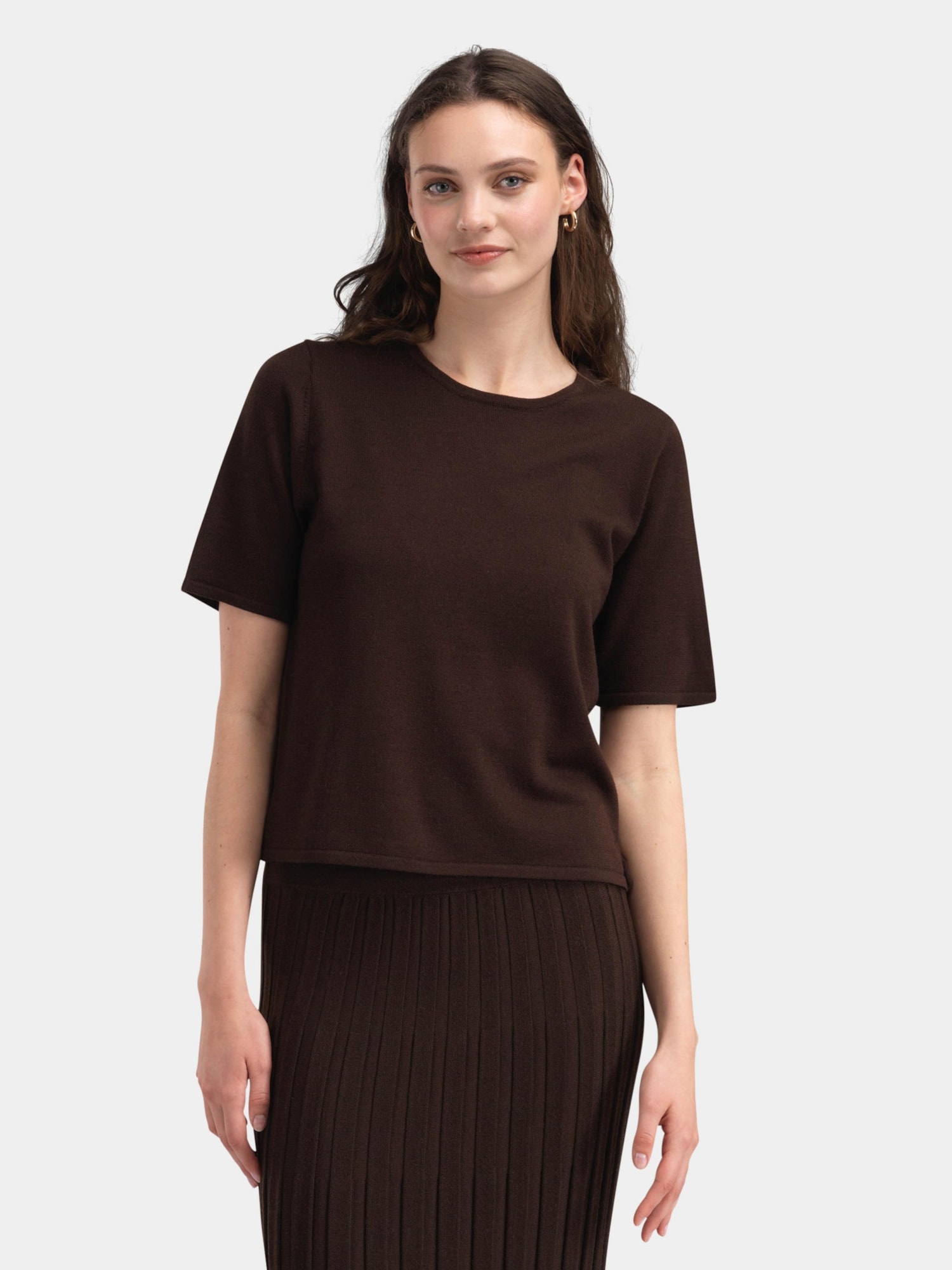 • Lauvhøe ull t-skjorte er en elegant og komfortabel topp laget i en eksklusiv blanding av ull og silke. Den myke, pustende kvaliteten gjør den perfekt for både hverdagsbruk og mer pyntede anledninger. Den enkle, tidløse designen med kort erm og rund hals gir et rent uttrykk, samtidig som silken tilfører et diskret skimmer og luksuriøs følelse.