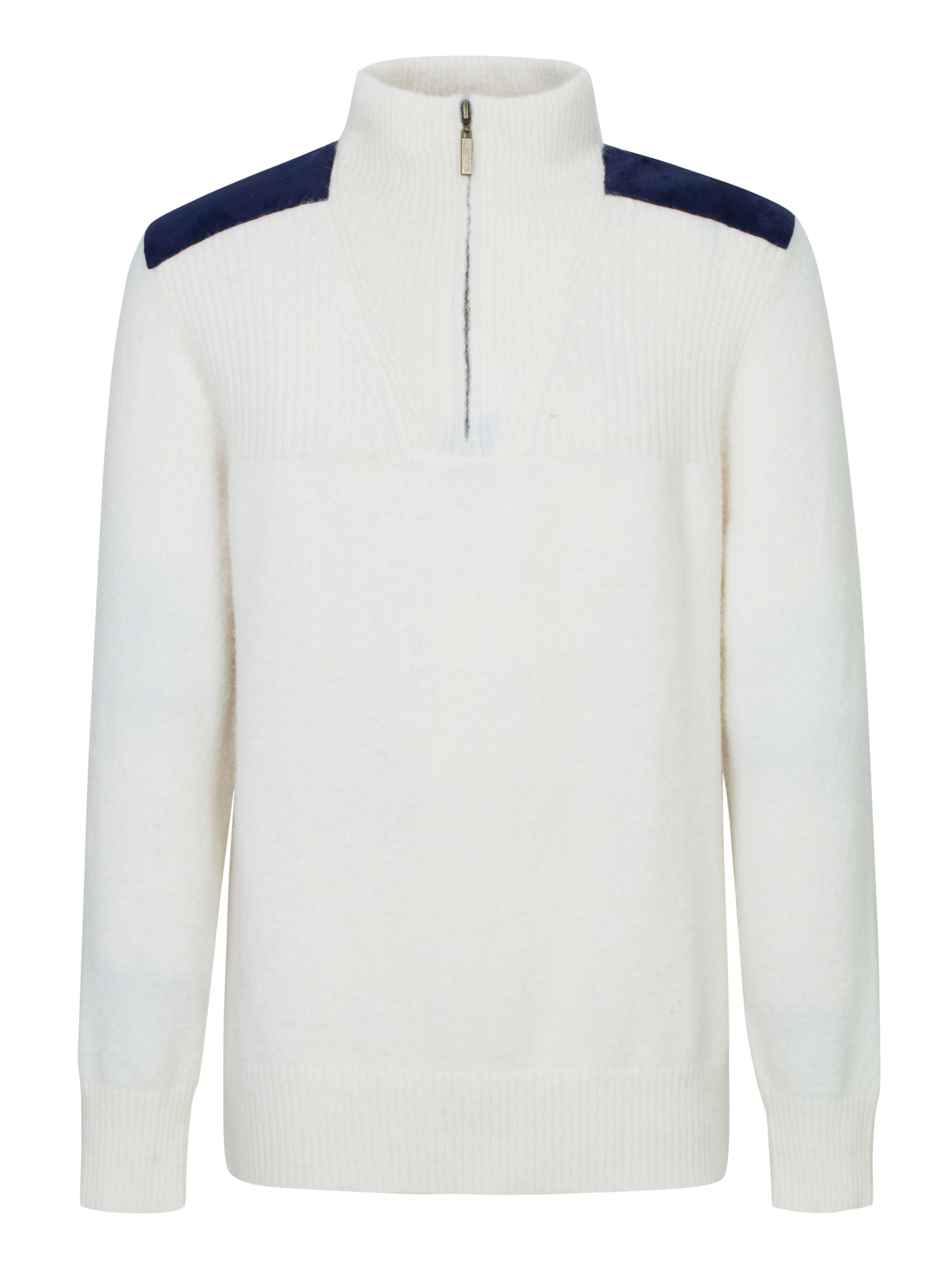 Knitted sweater for men with stylish cord details. This is a really nice knitted sweater in an alpaca blend with a high neck and a half-zip zip in the front, which gives the sweater a sporty look. The jumper is warm and good, and works as a real all-rounder, which can be used all year round - on skis and for everyday use.