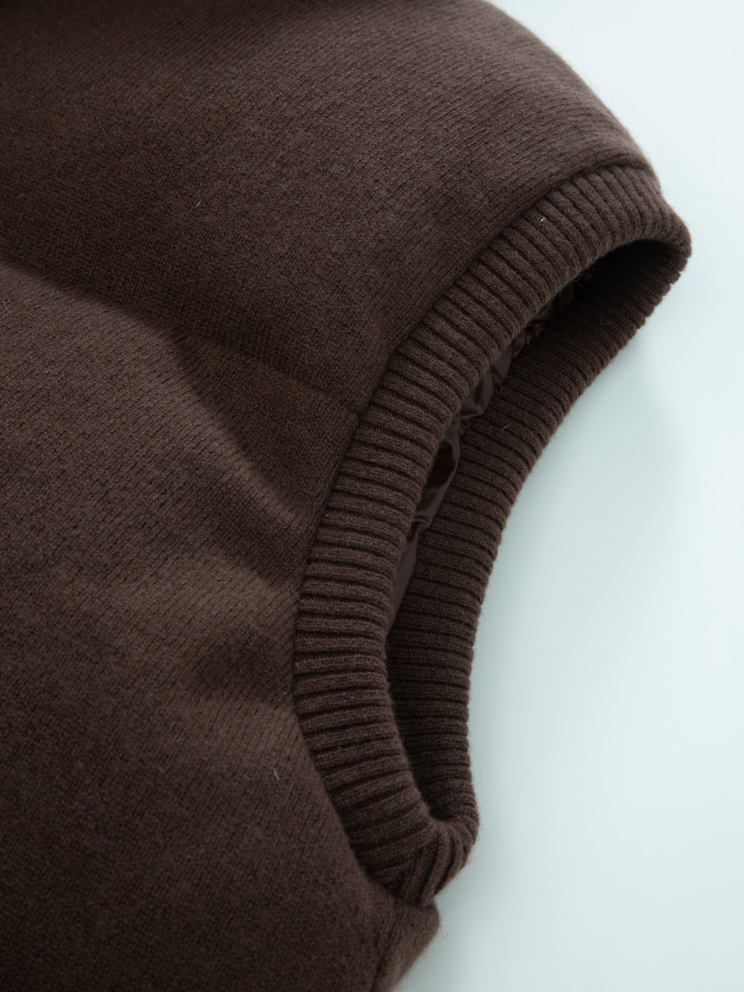 A finely knit vest made from 100% cashmere that feels soft and light against the skin. The vest is filled with 90% down and 10% feathers, making it feel lightweight and airy to wear.