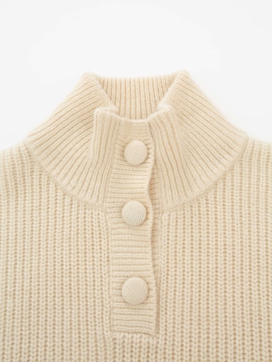 • Introducing Summer's Big Favorite - a sweater that combines style and comfort effortlessly! Crafted with meticulous attention to detail, this sweater is adorned with standout features. Its high collar, embellished with large buttons, adds a touch of elegance to your summer wardrobe. The delicate blend of wool and cotton creates an airy and lightweight feel, perfect for nordic summer.