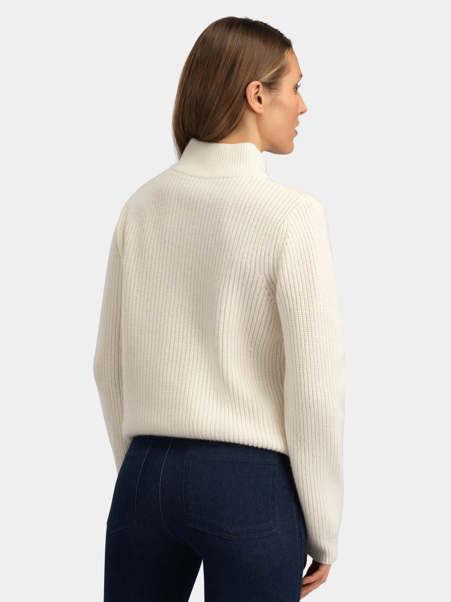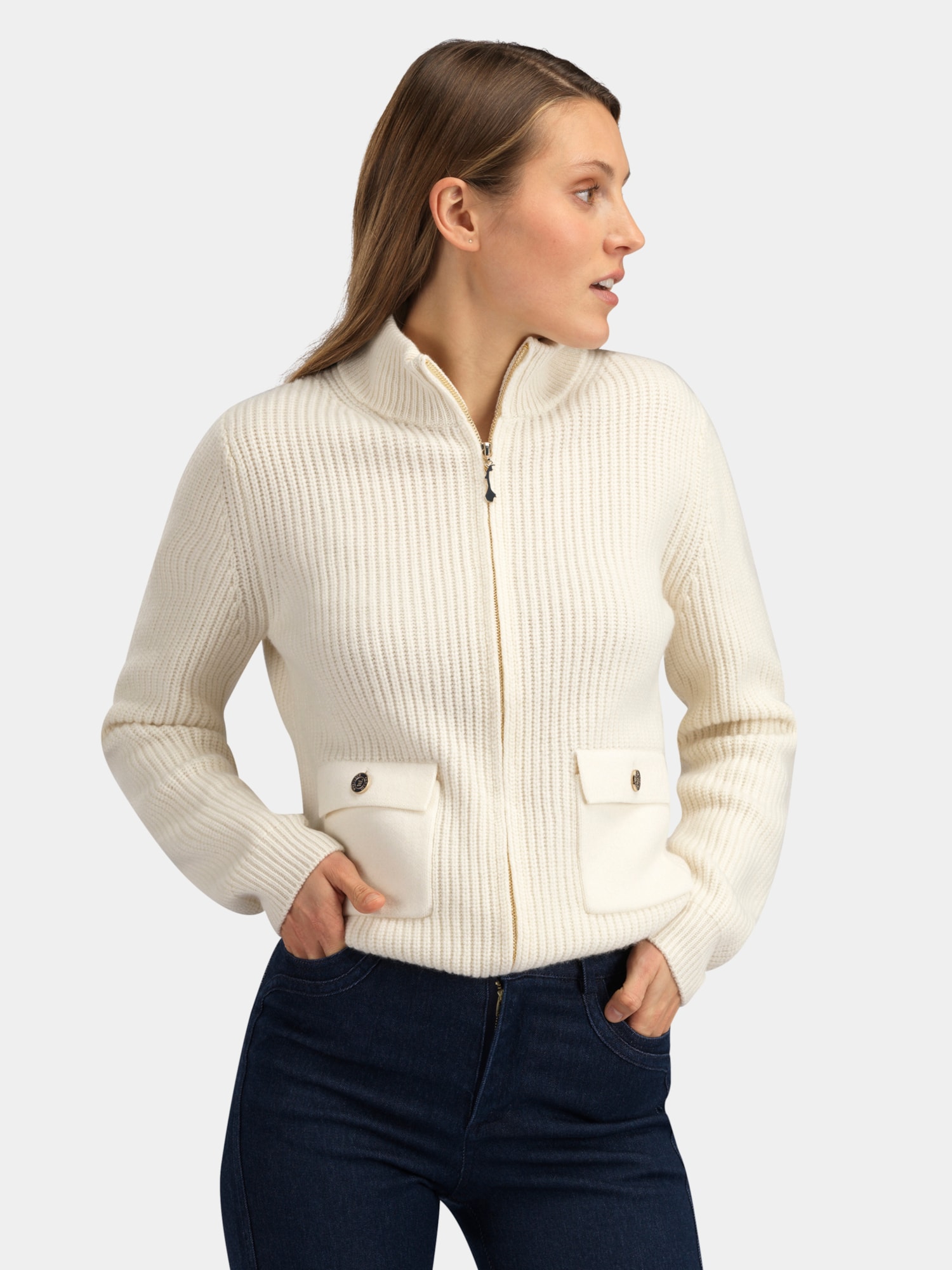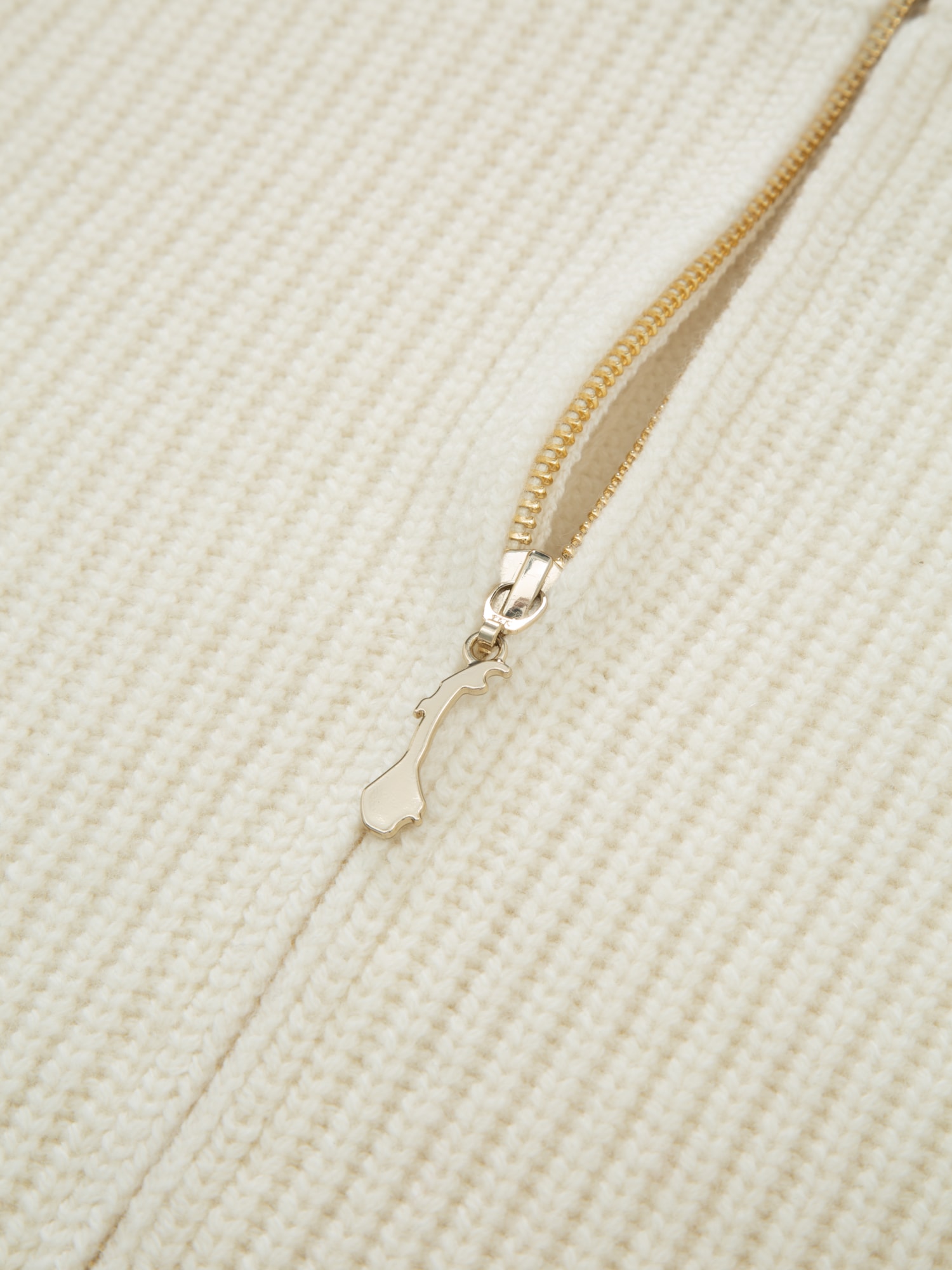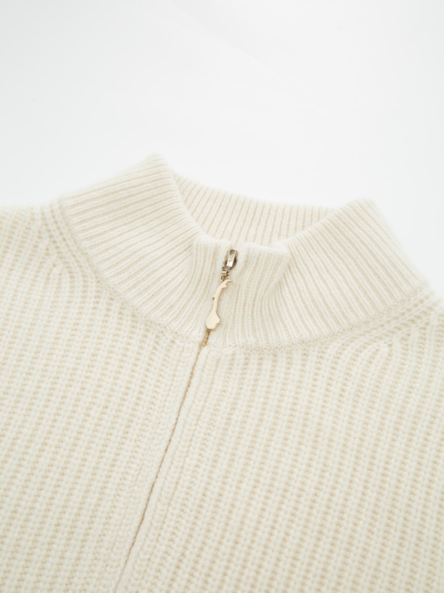Måtind is a soft and timeless knitted jacket crafted from an exclusive blend of wool and cashmere. It features a front zipper and subtle pocket details that give it a clean, modern look.