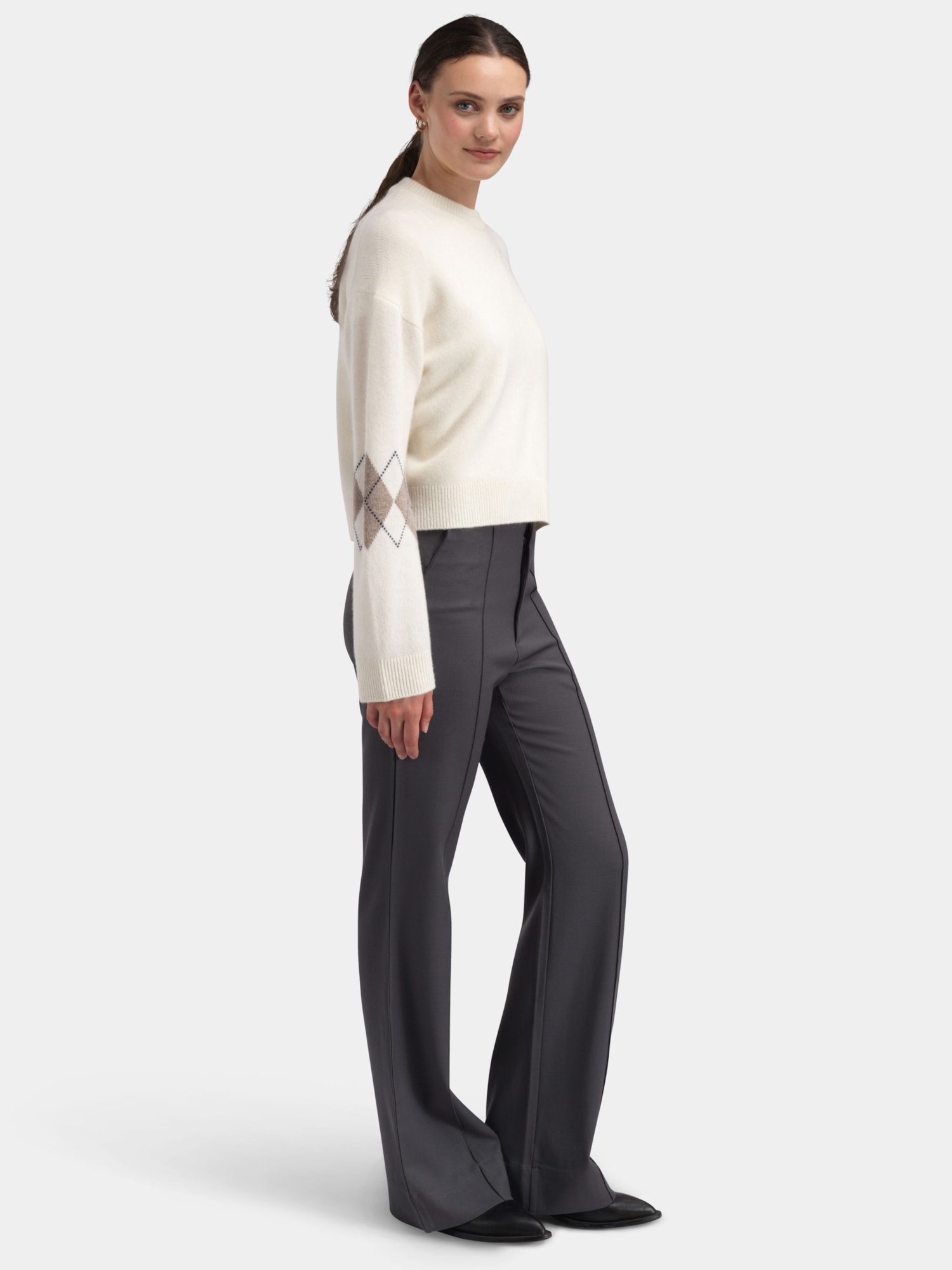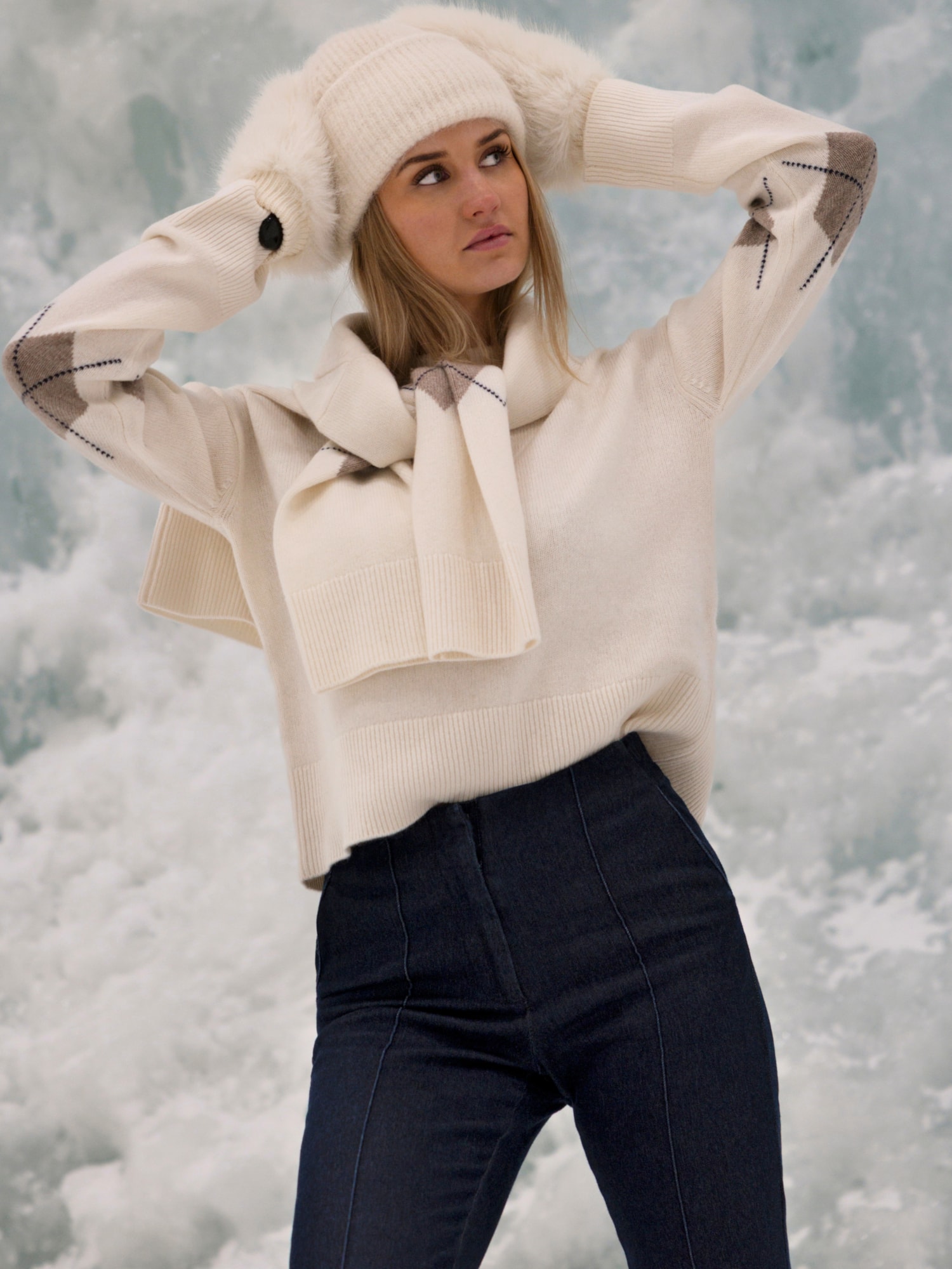 Midttoppen er en myk og behagelig ullgenser for damer, laget av 70 % ull og 30 % kashmir. Genseren har en ribbestrikket rund hals, samt ribbestrikkede detaljer på linning og ermer. Den har elegante detaljer ved albuene og en diskret, brodert WL-logo i nakken.