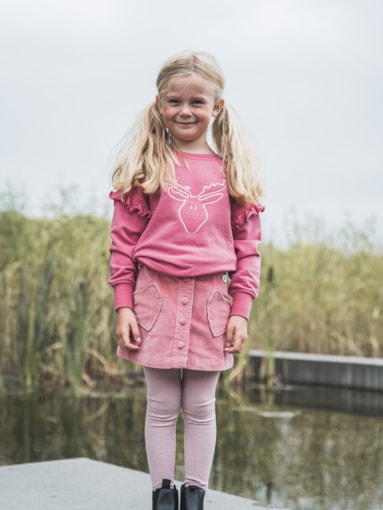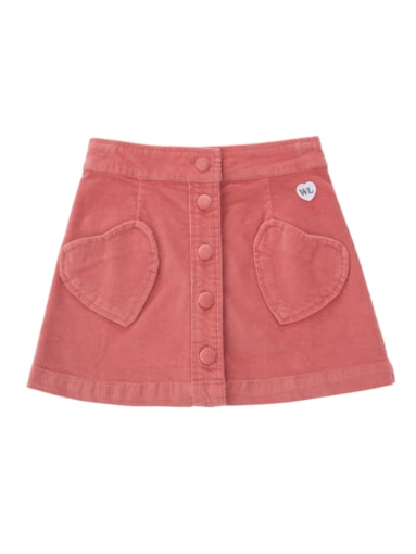 Sweet skirt for a girl in comfortable corduroy. Great fit and nice details with heart pockets, fabric-drawn buttons that match perfectly with all our merino wool tops and wool tights.