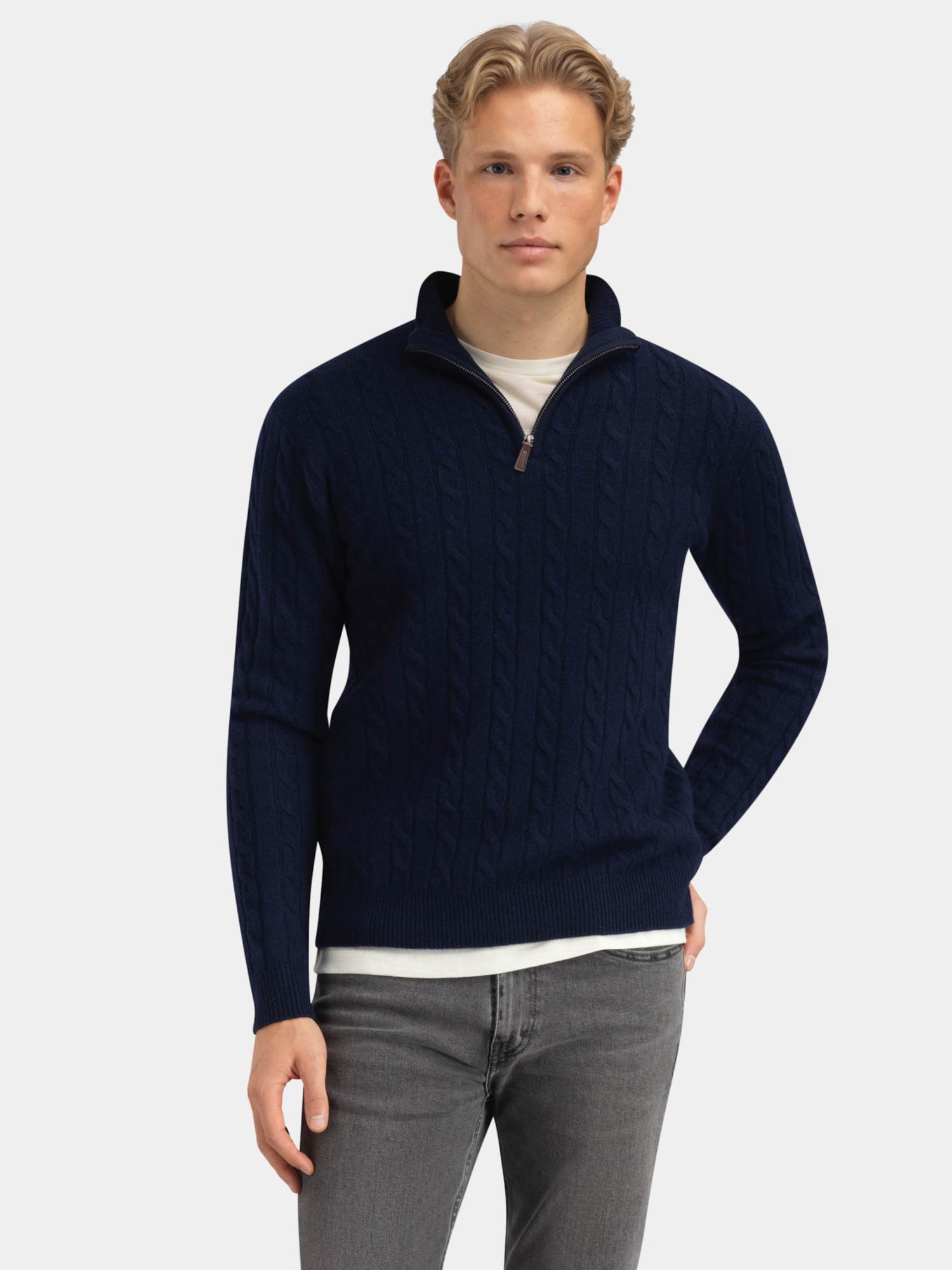 Numedalsvågen half-zip ullgenser er en utrolig myk og behagelig ullgenser for herre, laget av 70 % ull og 30 % kashmir. Den flettestrikkede strukturen gir genseren et sofistikert uttrykk. En stilren genser som passer like godt til tur som til hverdagsbruk.