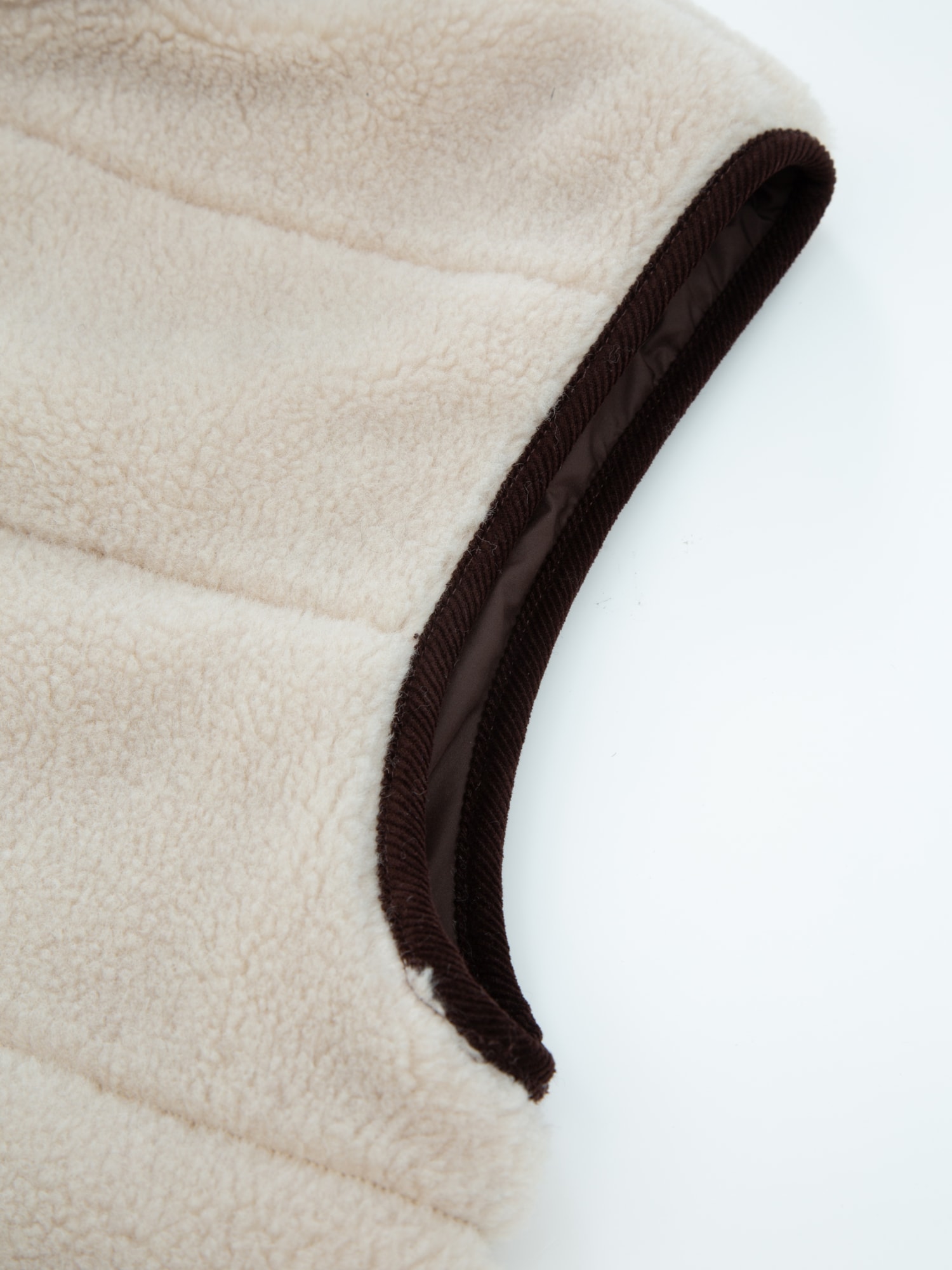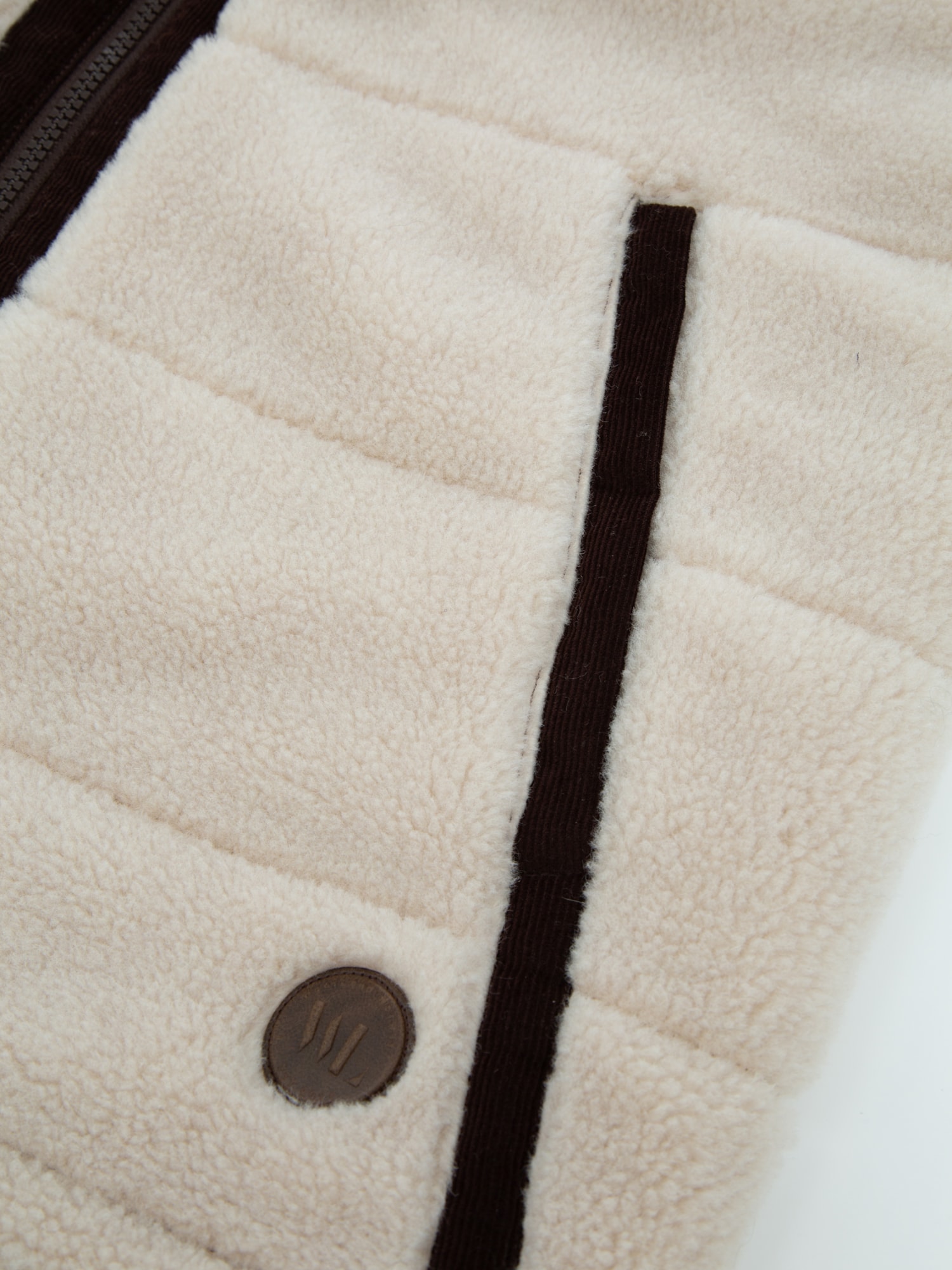 • Fleece vest in a lovely teddy style. The vest features practical zippered side pockets and a stylish patch on the left chest. It is perfect for wearing alone when the weather permits or as a warming mid-layer under a jacket. Soft and comfortable, it is equally suitable for everyday wear and outdoor adventures.