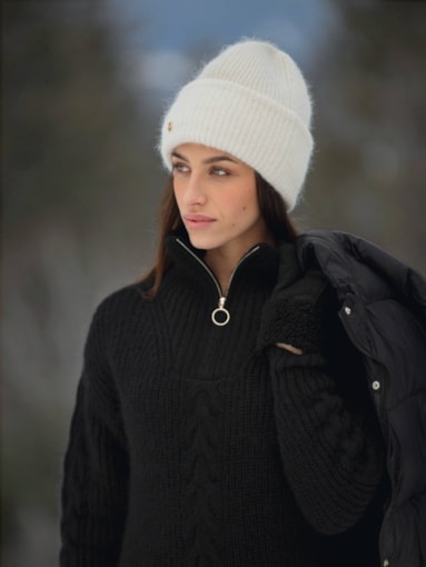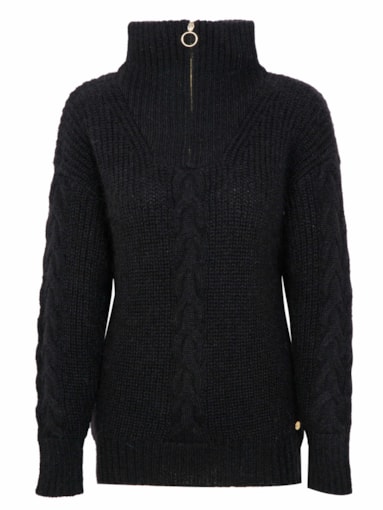 The softest blend of kid mohair and wool to warm you. The olden sweater features a half zip and braided details on the front part and arms. This Half Zip is not as chunky as our other knitted hlavzip sweaters.