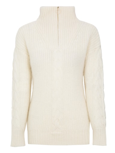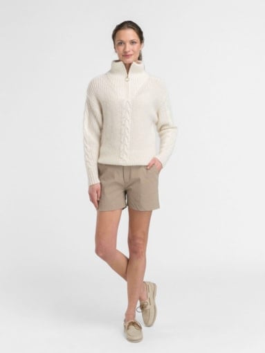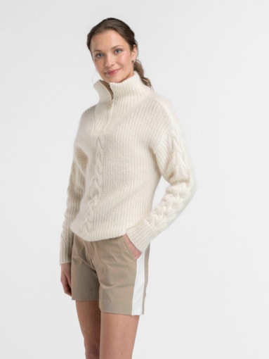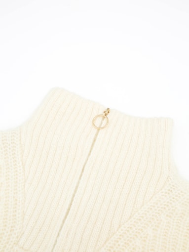 The softest blend of kid mohair and wool to warm you. The olden sweater features a half zip and braided details on the front part and arms. This Half Zip is not as chunky as our other knitted hlavzip sweaters.