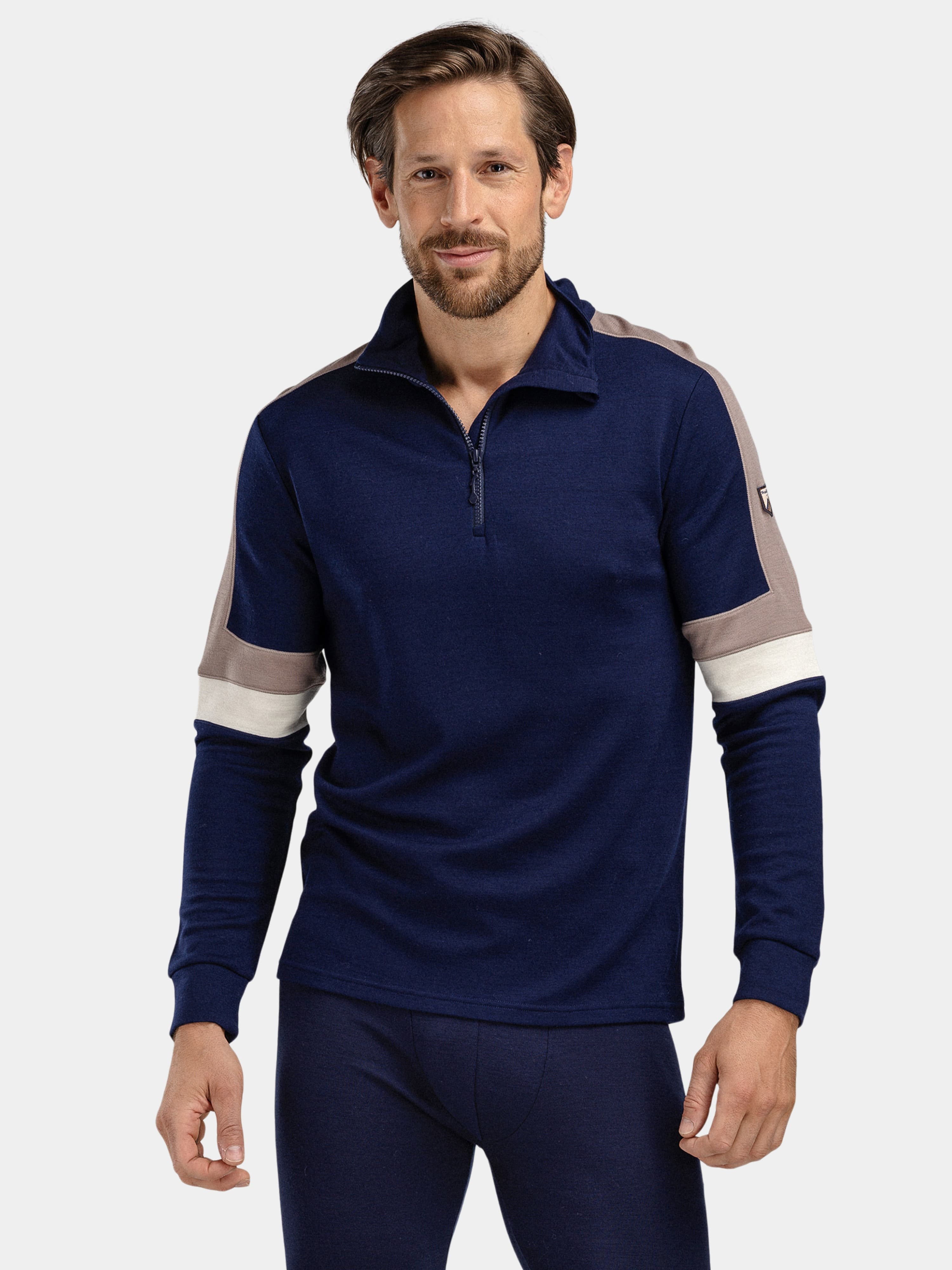 • Explore our sporty and thicker Base Layer for men – the ultimate combination of functional thermal underwear and a stylish top layer. The robust wool quality allows the base layer to be worn as a warm layer under other clothing or on its own. This makes the sweater incredibly versatile and an indispensable companion in your winter wardrobe.