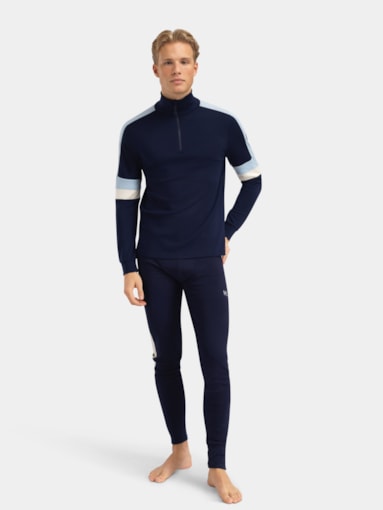 Explore our sporty and thicker Base Layer for men – the ultimate combination of functional thermal underwear and a stylish top layer. The robust wool quality allows the base layer to be worn as a warm layer under other clothing or on its own. This makes the sweater incredibly versatile and an indispensable companion in your winter wardrobe.