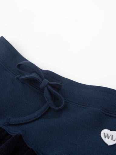 A beautiful wool skirt for girls made from 100% the softest merino wool, featuring a delicate ruffle trim. The skirt has a drawstring at the waist and extra width, giving it a lovely drape. There is also a smart wool boxer short inside the skirt to keep girls warm while looking stylish.