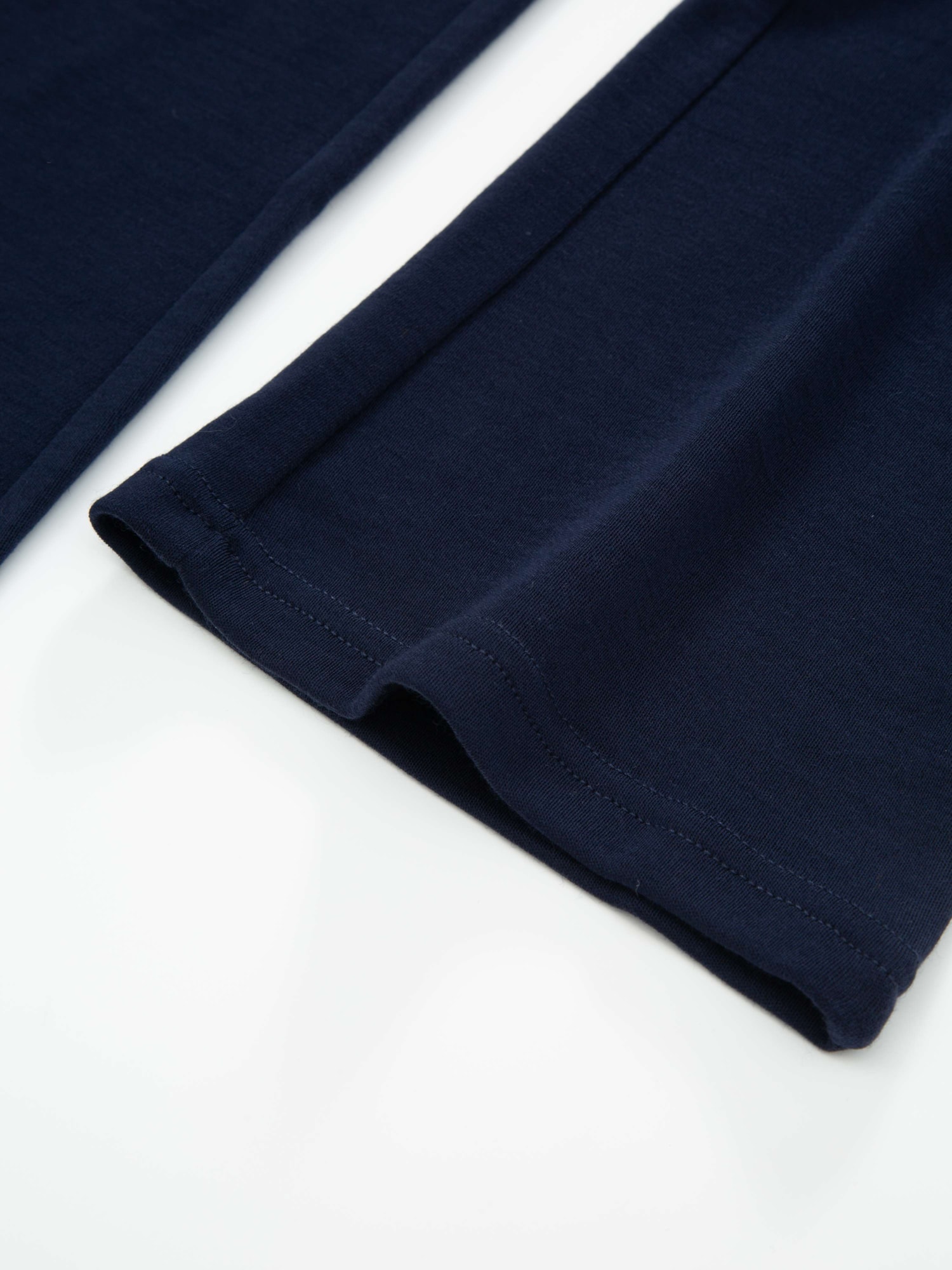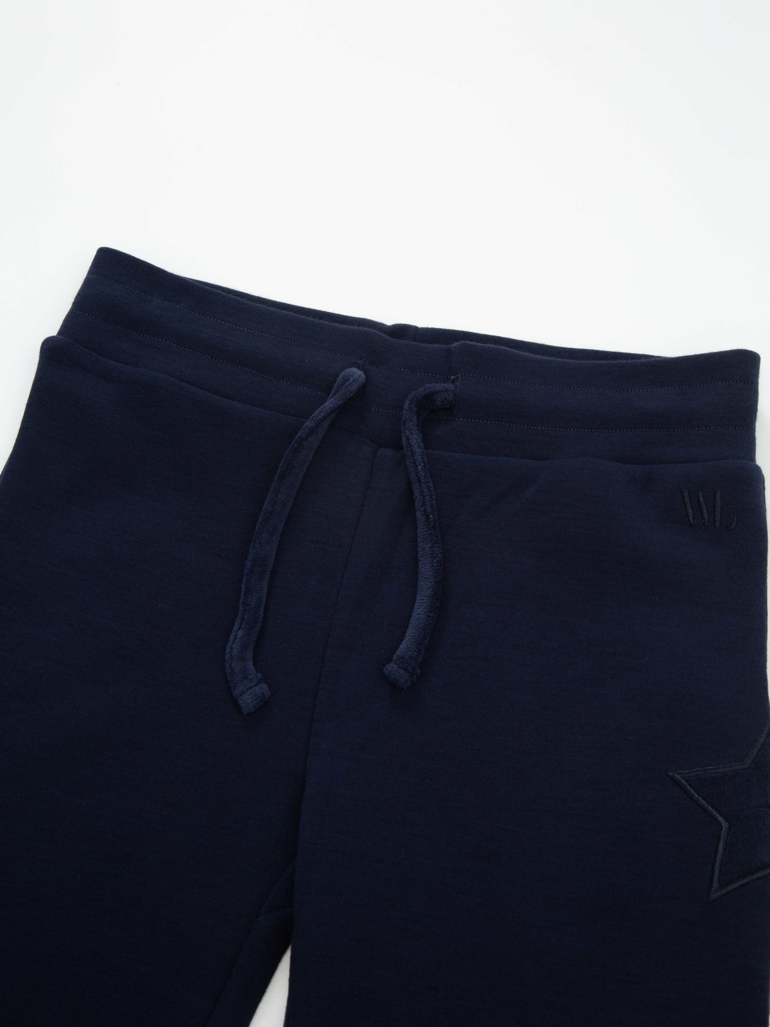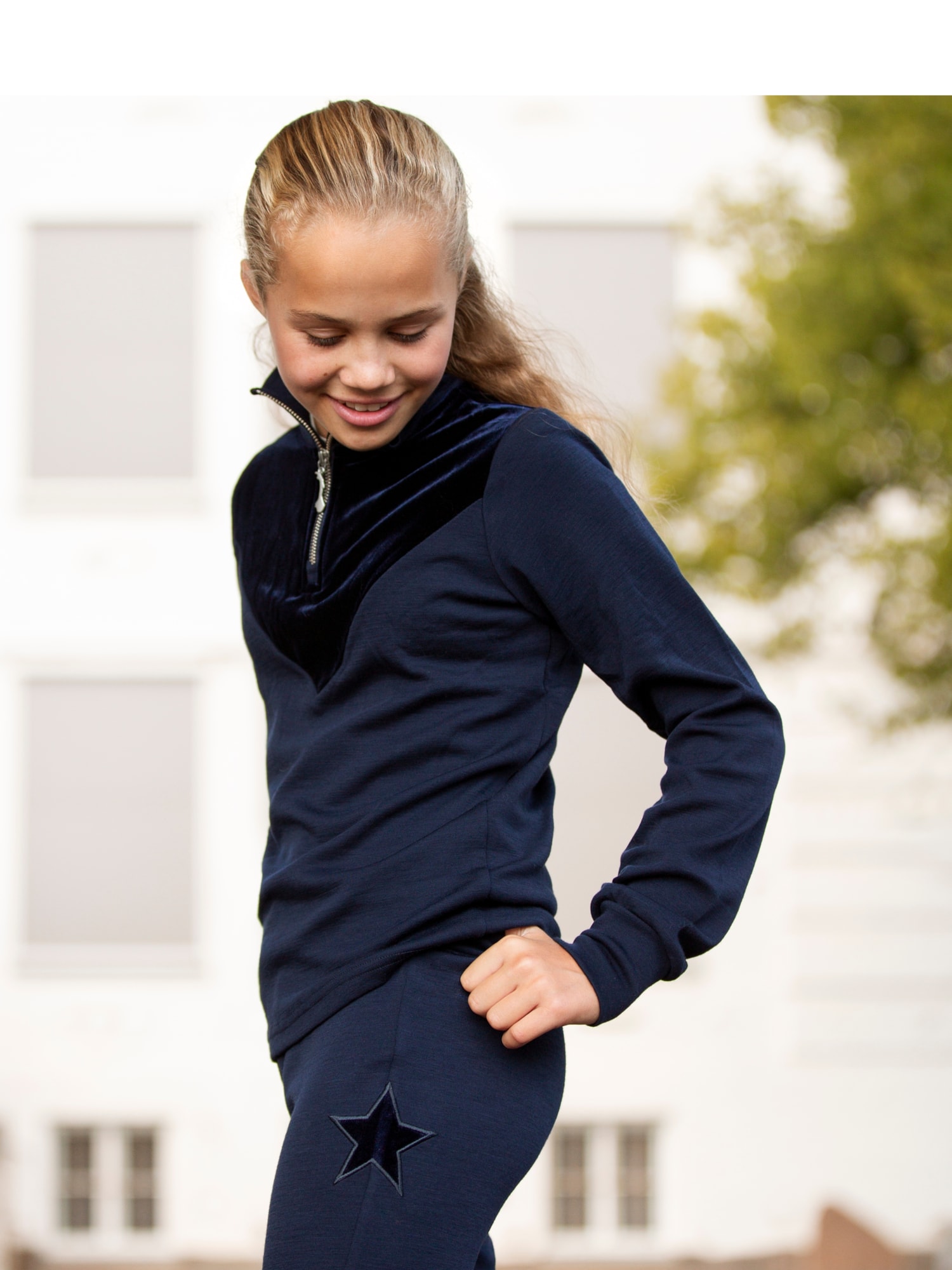 Sirdal slengbukse til jente er laget i 100 % merinoull i vår myke og behagelige 2-i-1-kvalitet. Buksen har tre dekorative stjerner i velour langs det ene benet og veloursnøring i livet. Kombiner den med Sirdal half-zip-genser for et komplett og behagelig ullsett.