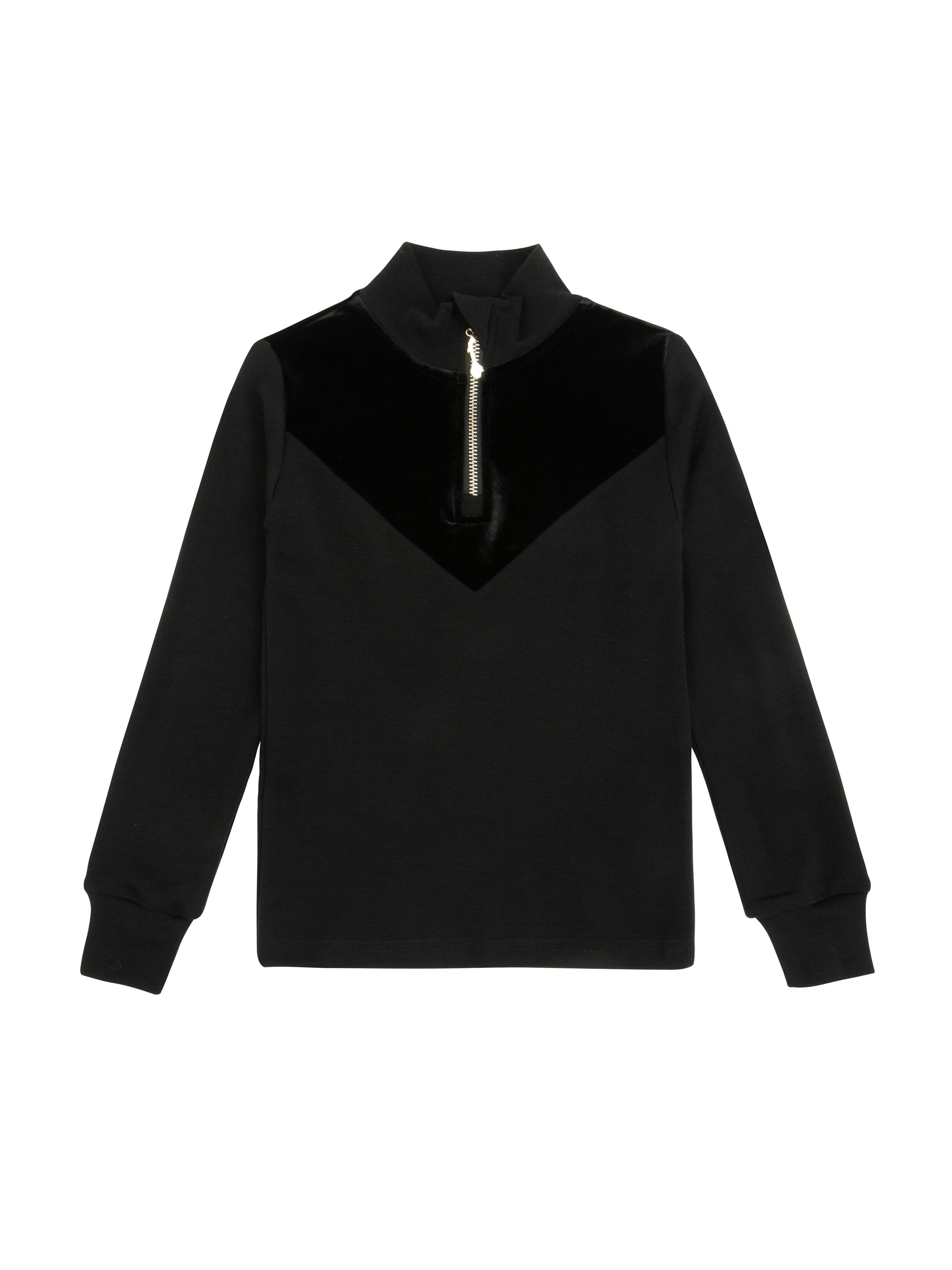 • This is one of our best-selling wool sweaters for girls. The wool top is single color with a lot of wool velour on the chest, half-zip zipper in the front and logo patch on one arm. Nice and sporty wool top that can be used at school or for activities. Made of 100% finest merino wool.