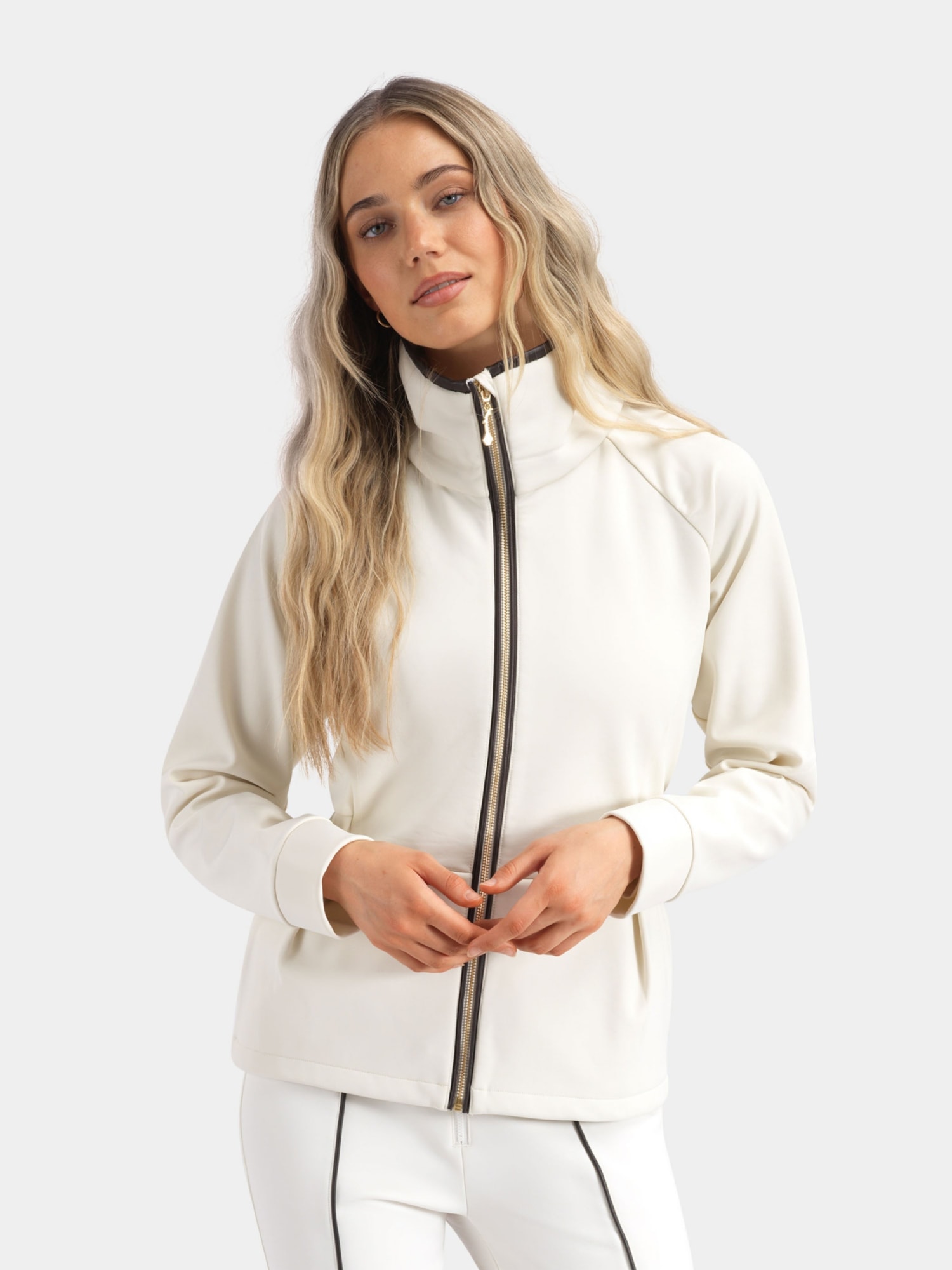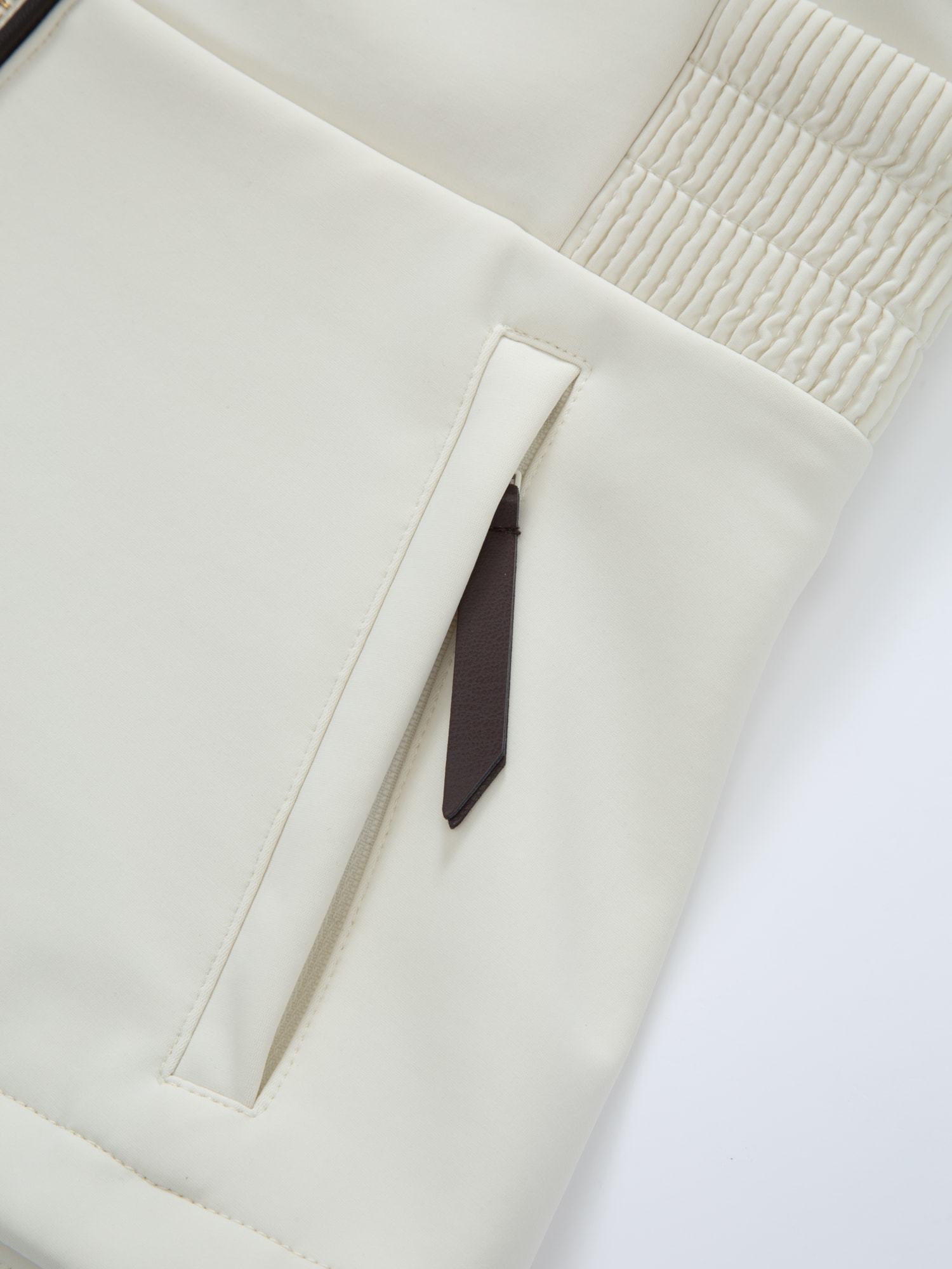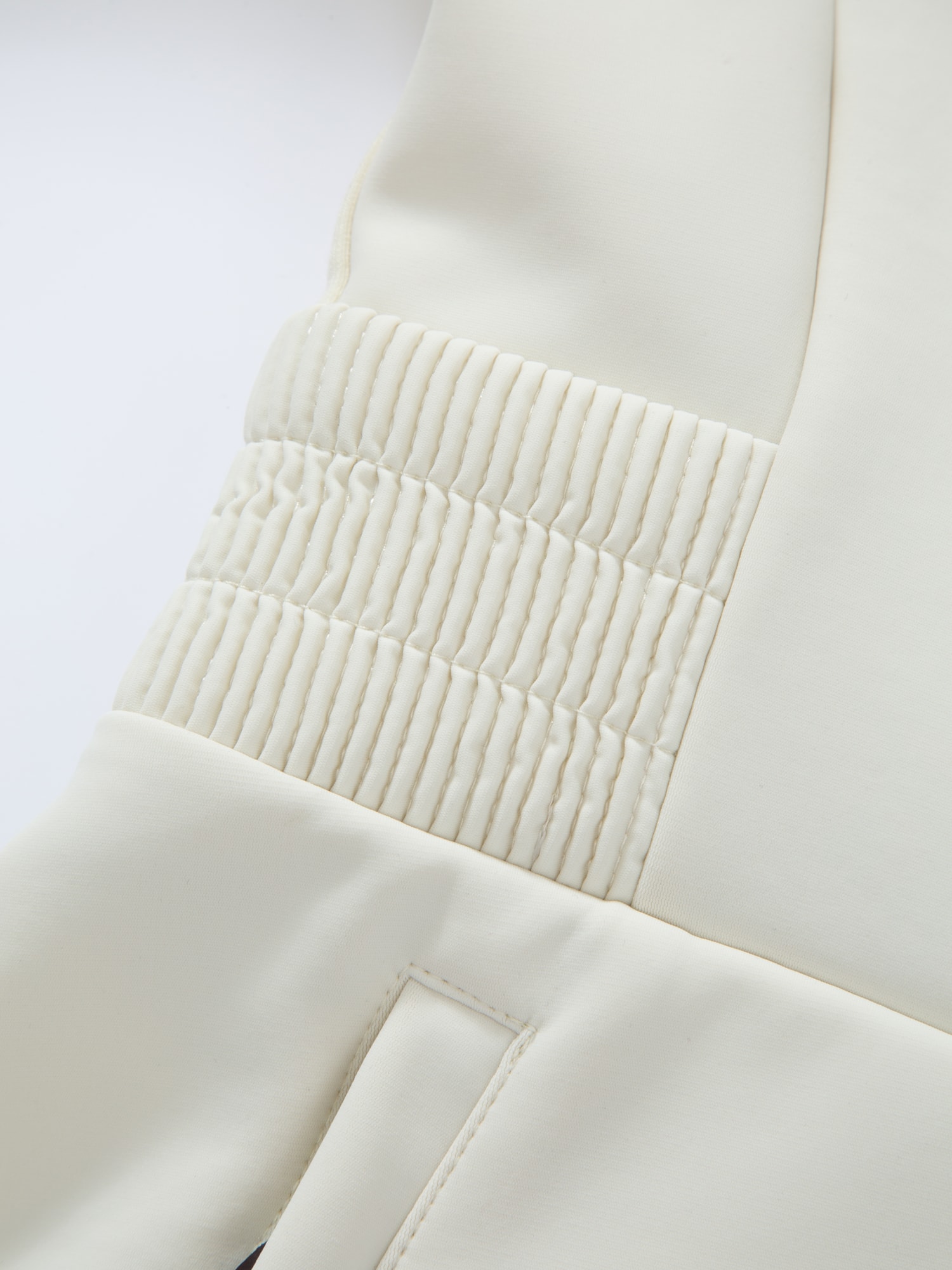The feminine fit, high collar, and faux leather details give the jacket an exclusive look. Practical zip pockets and elastic details at the waist make it comfortable for both skiing and everyday wear. Pair it with the Spiterhøi Ski Pants for a complete set.