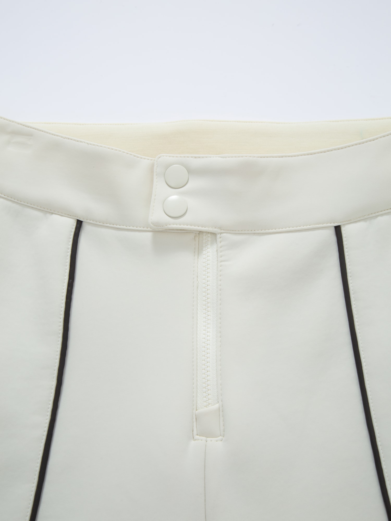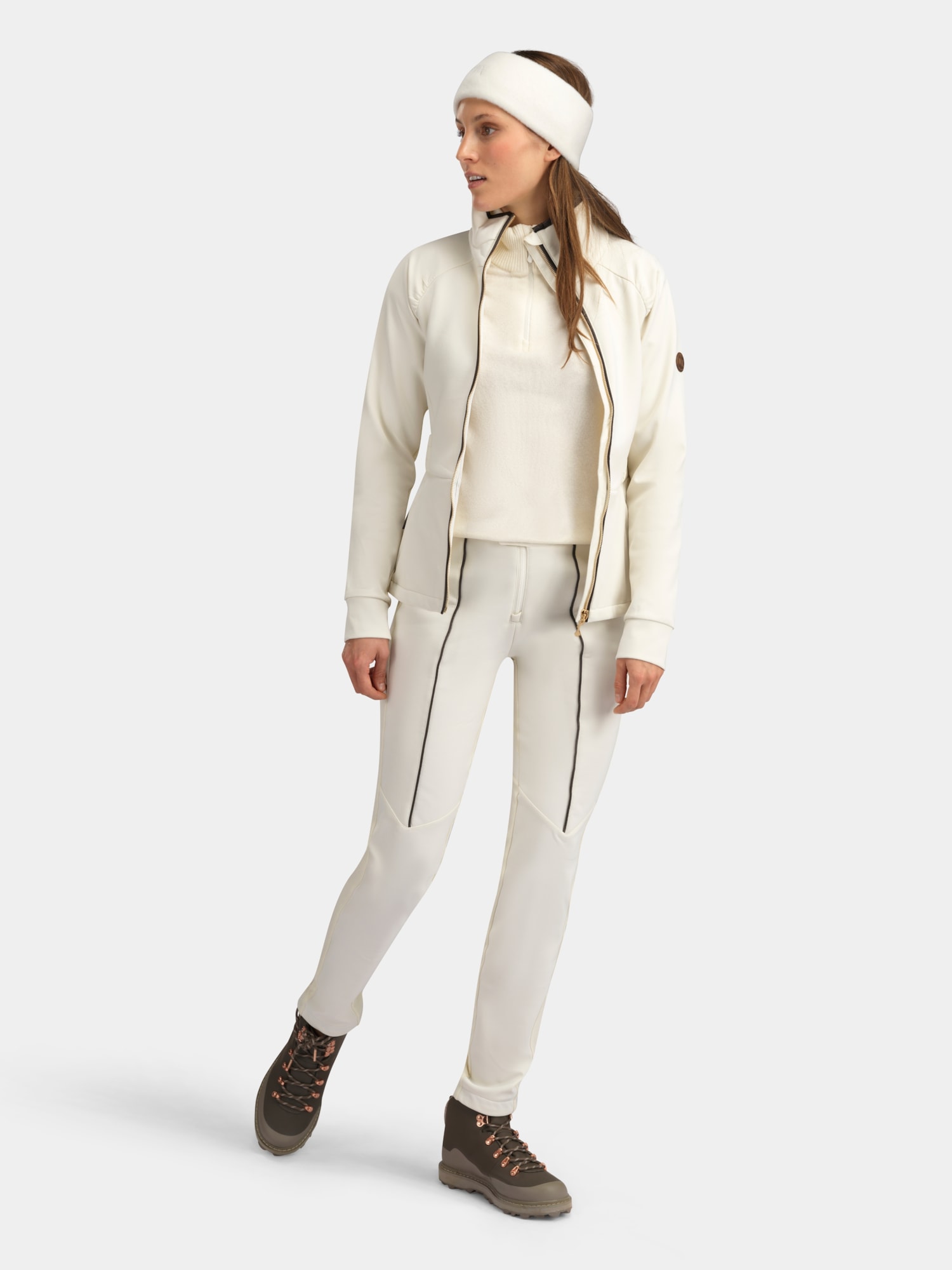 Strategically placed stretch panels ensure full mobility and provide ventilation where you need it most. The windproof and water repellent surface protects against the elements, while zippers at the bottom of the legs make them easy to put on and take off. With a comfortable fit at the waist, button and zip closure, these pants are both functional and flattering – a piece you will use throughout the entire winter season.