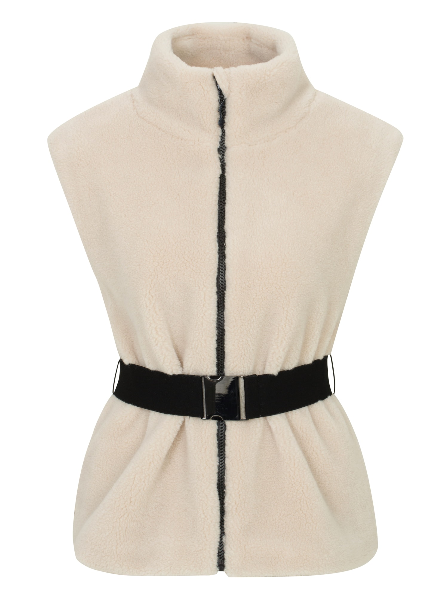Storronden Quilted Wool Vest combines function and style with a modern, feminine cut. The soft, textured surface offers a luxurious feel, while the wide elastic belt at the waist creates a flattering silhouette. The vest is quilted with 100% wool for extra warmth and is fully lined for comfort against the skin.