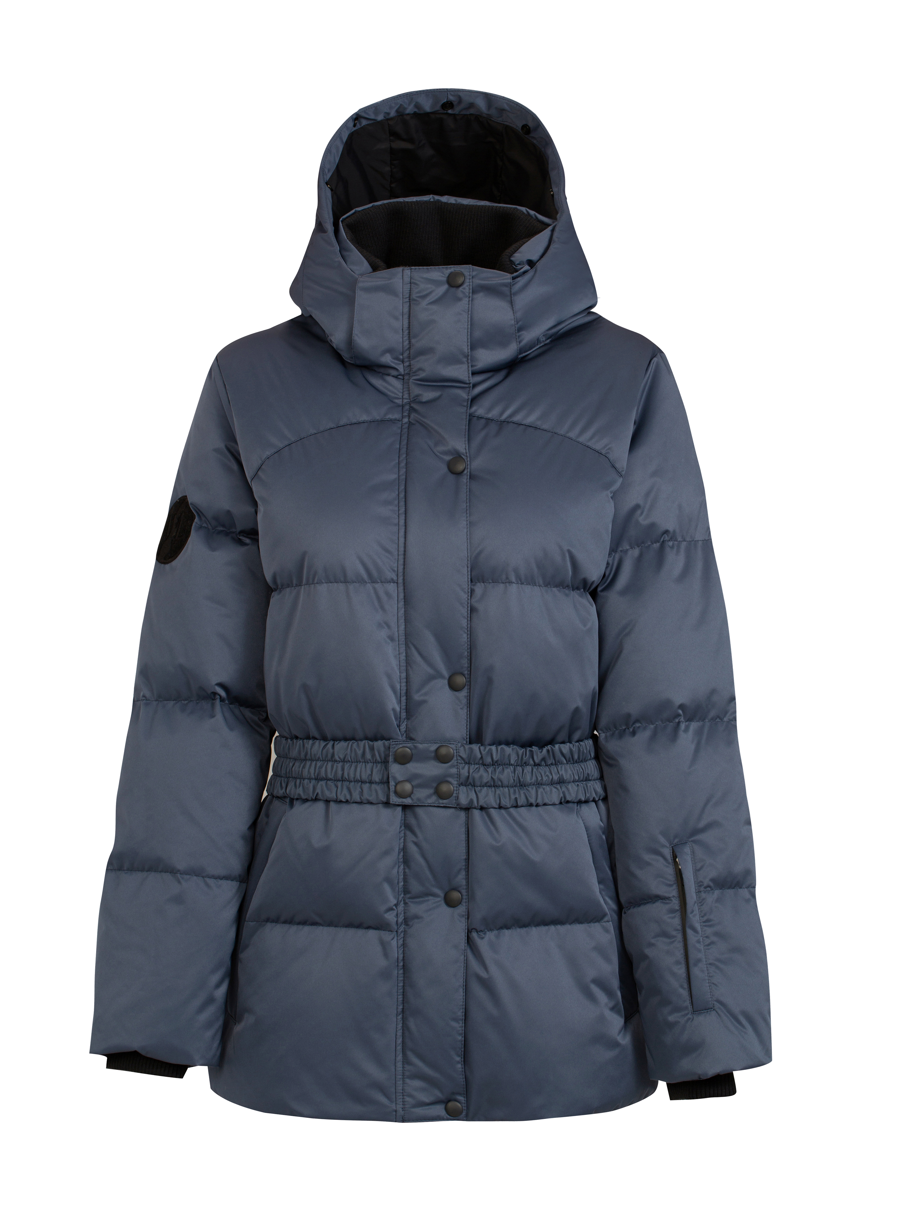 • This jacket is just as good in urban environments as it is on the ski slope. Windproof, water resistant with a water column of 3000 mm which will protect against rain and snow for a period. The Jacket has a removable hood, and an elastic belt that is practical and gives a feminine fit. Fur collar can be purchased separately and fastened with hidden buttons.