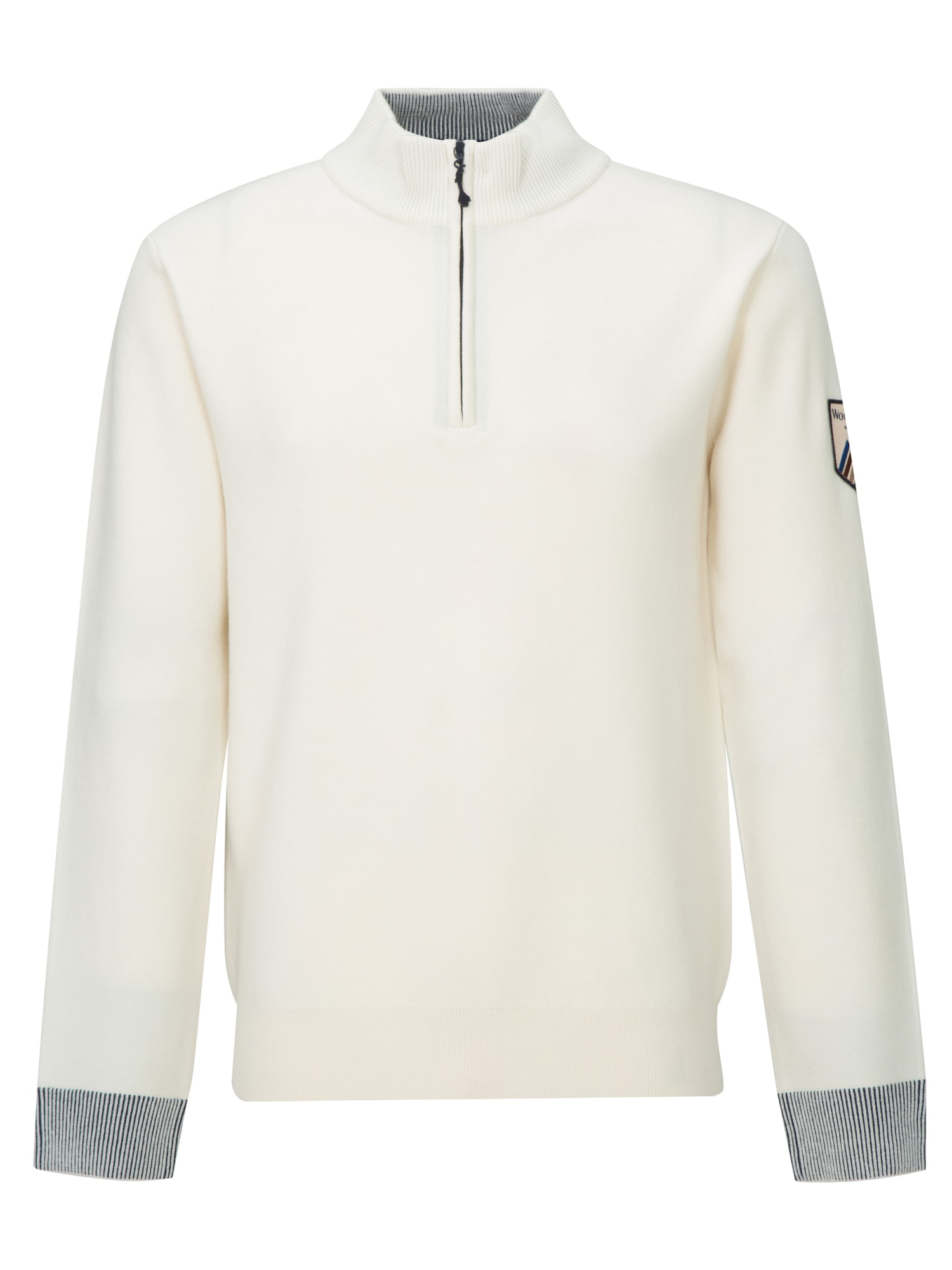 • Lovely knitted half-zip wool sweater made from 100% wool that feels soft against the skin. It features ribbed knitting at the sleeves and hem, a short ribbed collar with a half-zip, and a patch on the left arm. There are reinforcements on the back of the arm. The Tydal sweater is perfect for everyday wear or as an extra layer on the slopes.